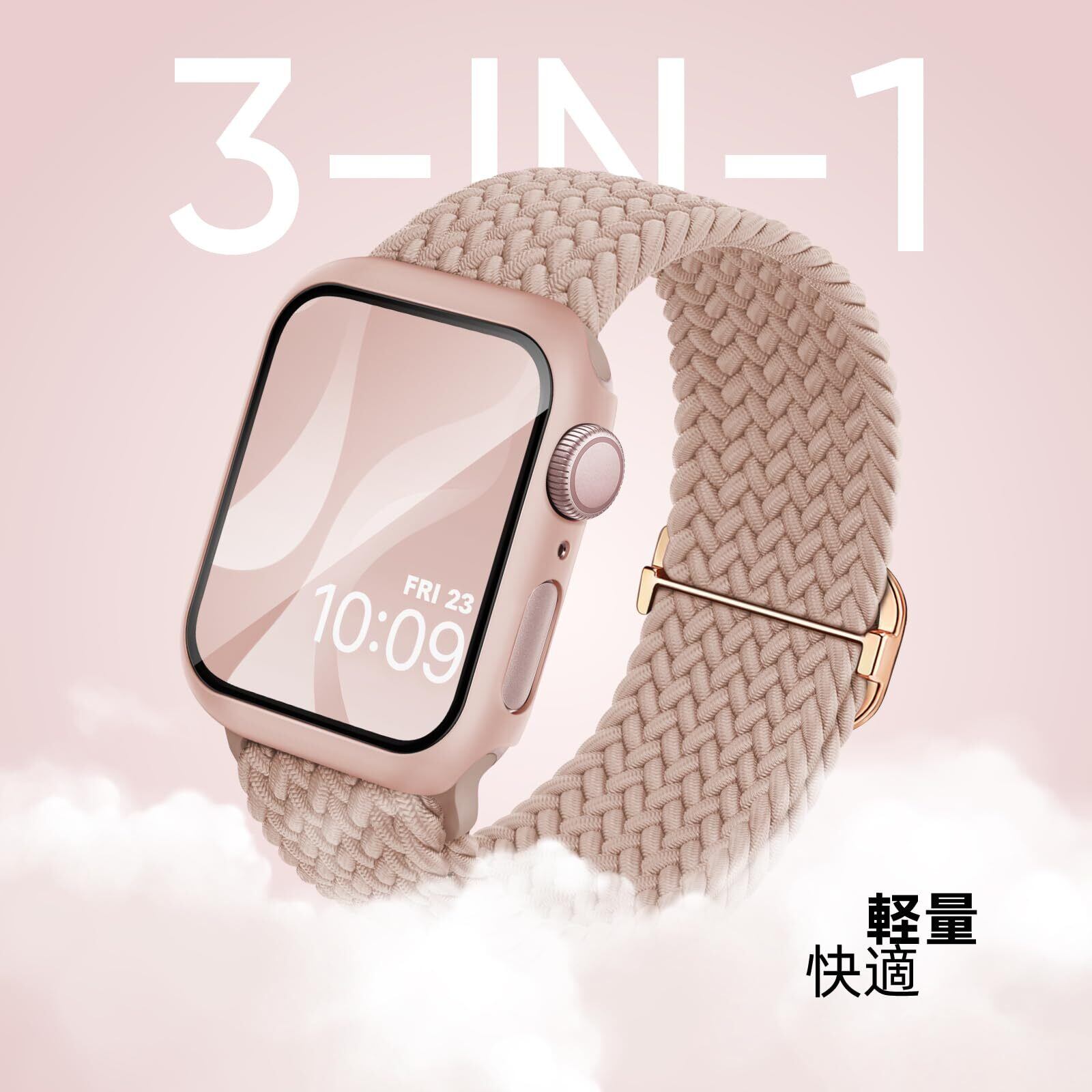 コンパチブル Apple Watchと互換性のあるバンド 編みナイロン製 アップルウォッチ用バンド 保護カバー付き アップルウォッチ向けのスポーツバンド 互換用のApple Watch バンドとケース 一体型 耐衝撃 全面保護 装着簡単 Series 9 8 7 6 5 4 3 2 1SEアップルウォッチ バンド 編み込み40mm 41mm 44mm 45mmに対応レディース