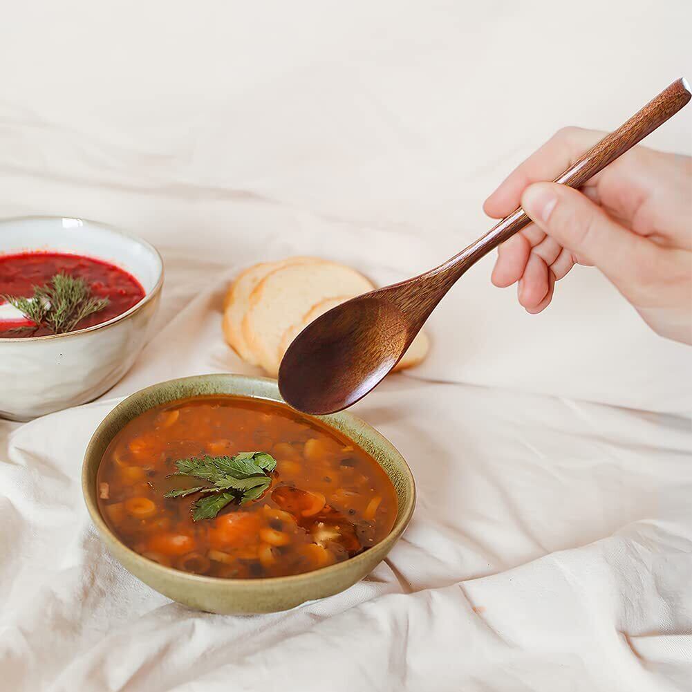 落ち着いた色で、どんな食器にも合わせやすい天然木製スプーンセット、飽きのこないデザインで、長く愛着を持ってお使いいただけます。