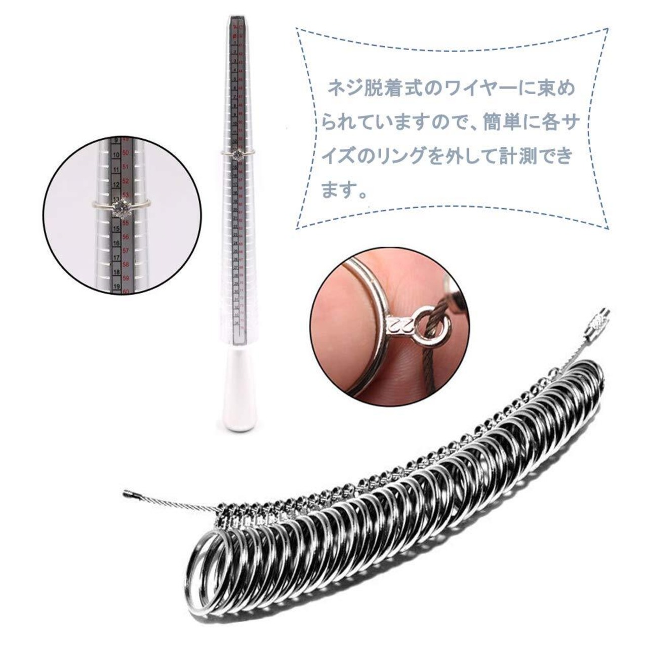 【測定時のご注意】リングゲージ 自体の重さで指とゲージの間に隙間ができ、実際の サイズ より緩くなる場合があります。測定時には、ワイヤーから外すか手のひらに接地させてお測り下さい。指輪を着ける指の腹より第二関節が太い方は、関節が無理なく通るサイズが適正なサイズとなります。体調などで指のサイズが変化することがございますので、朝夕それぞれ1回ずつ測定してください。