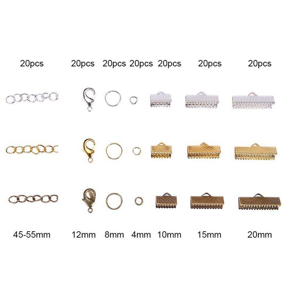 PandaHall アクセサリーパーツ 金具セット 約420入り 紐止め 留め具 エンドパーツ ワニ口 カニカン 丸カン マルカン ジャンプリング リボンエンド 基礎パーツ 金具セット 金具キット パーツ ジュエリー DIY用 混合色