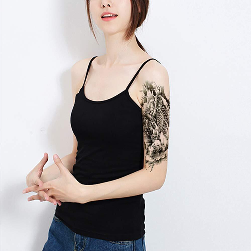 【在庫セール】Yesallwas タトゥーシール 鯉 蓮の花 赤 錦鯉 6枚セット 和柄 入れ墨シール リアル 大判 防水 長持ち 和彫り 刺青シール ボディーシール 子供 メンズ レディース Tatoo 15x21CM (D.6枚セット) | allstore3