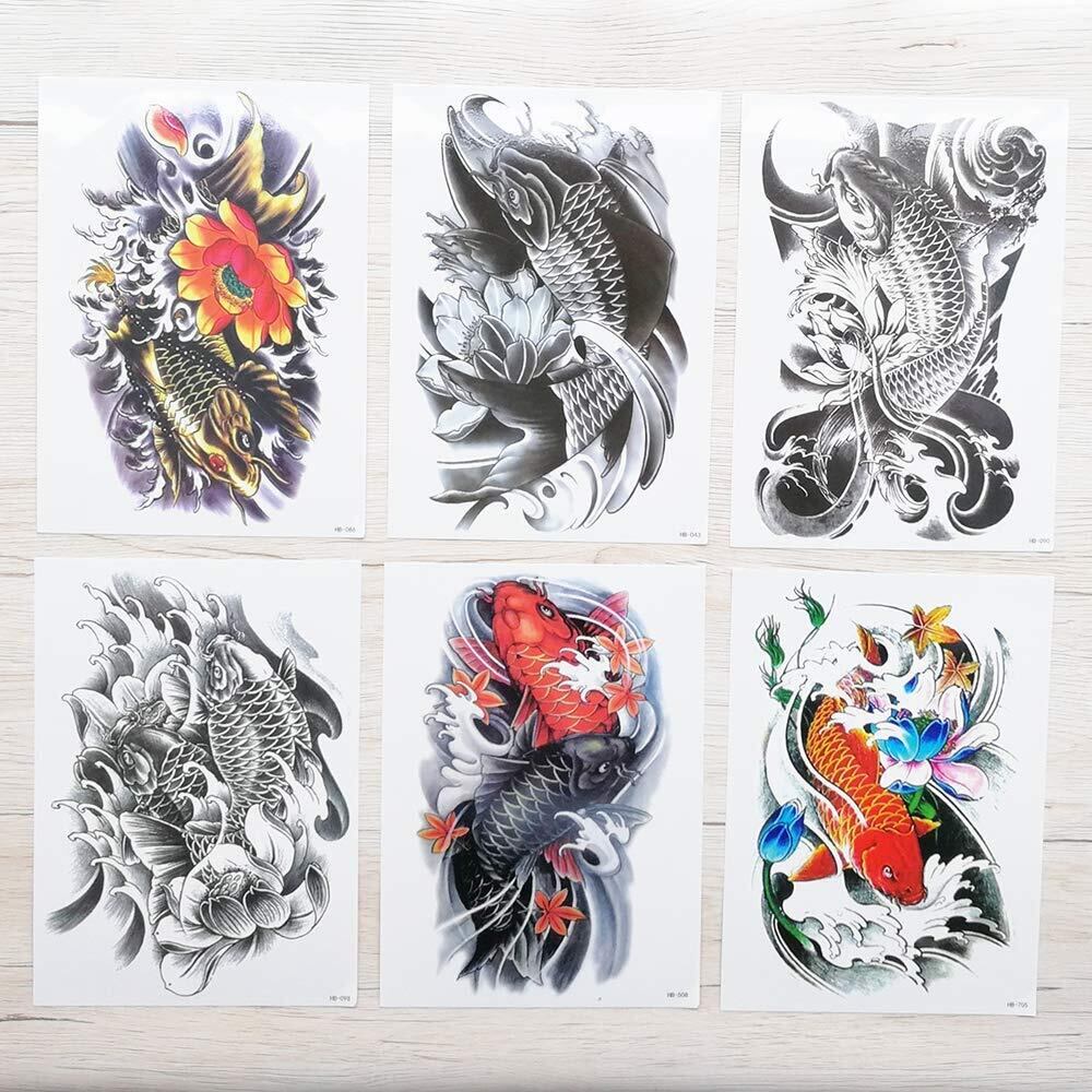 【セット内容】タトゥーシール 鯉 蓮の花、6枚セット。6種類、各1枚。