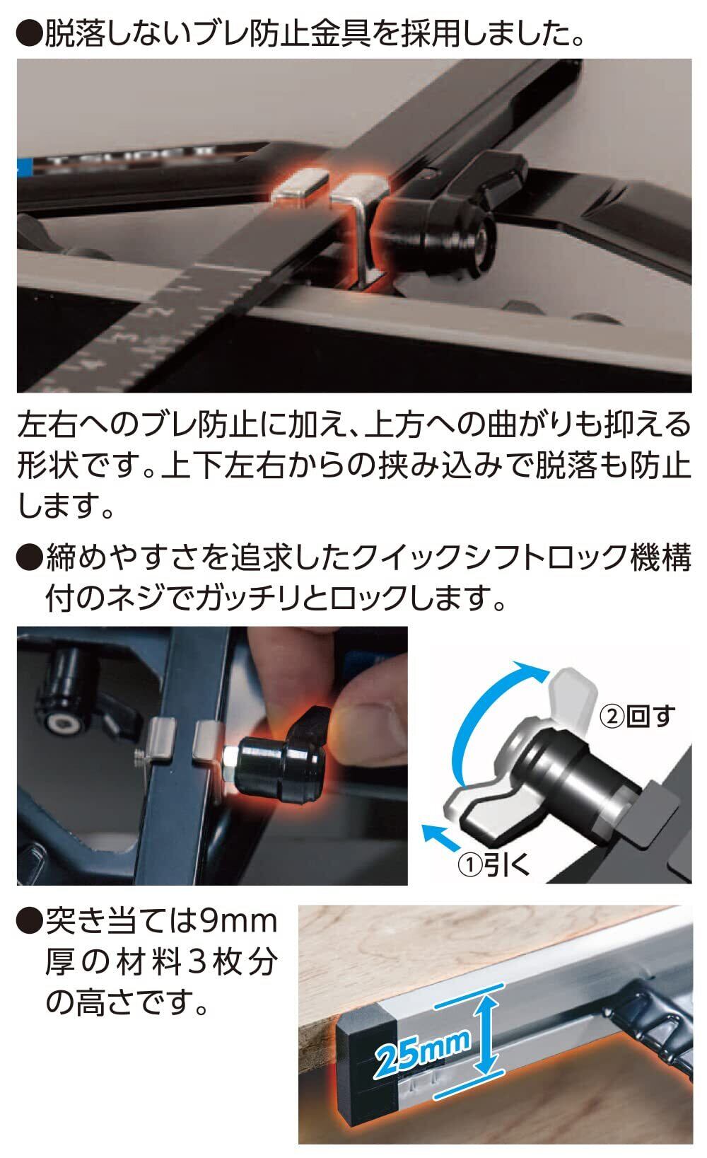 ・従来の左右に対するブレ防止に加え、上方への曲がりも抑える形状に