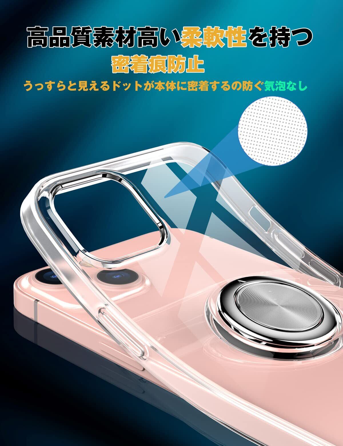 iPhone 13 Pro Max 用 ケース リング付き スマホケース アイフォン 13プロマックス 用 クリアケース 透明 TPU ストラップホール付き 耐衝撃 スタンド機能 車載ホルダー対応 一体型 アイホン13promax 携帯ケース カバー・クリア