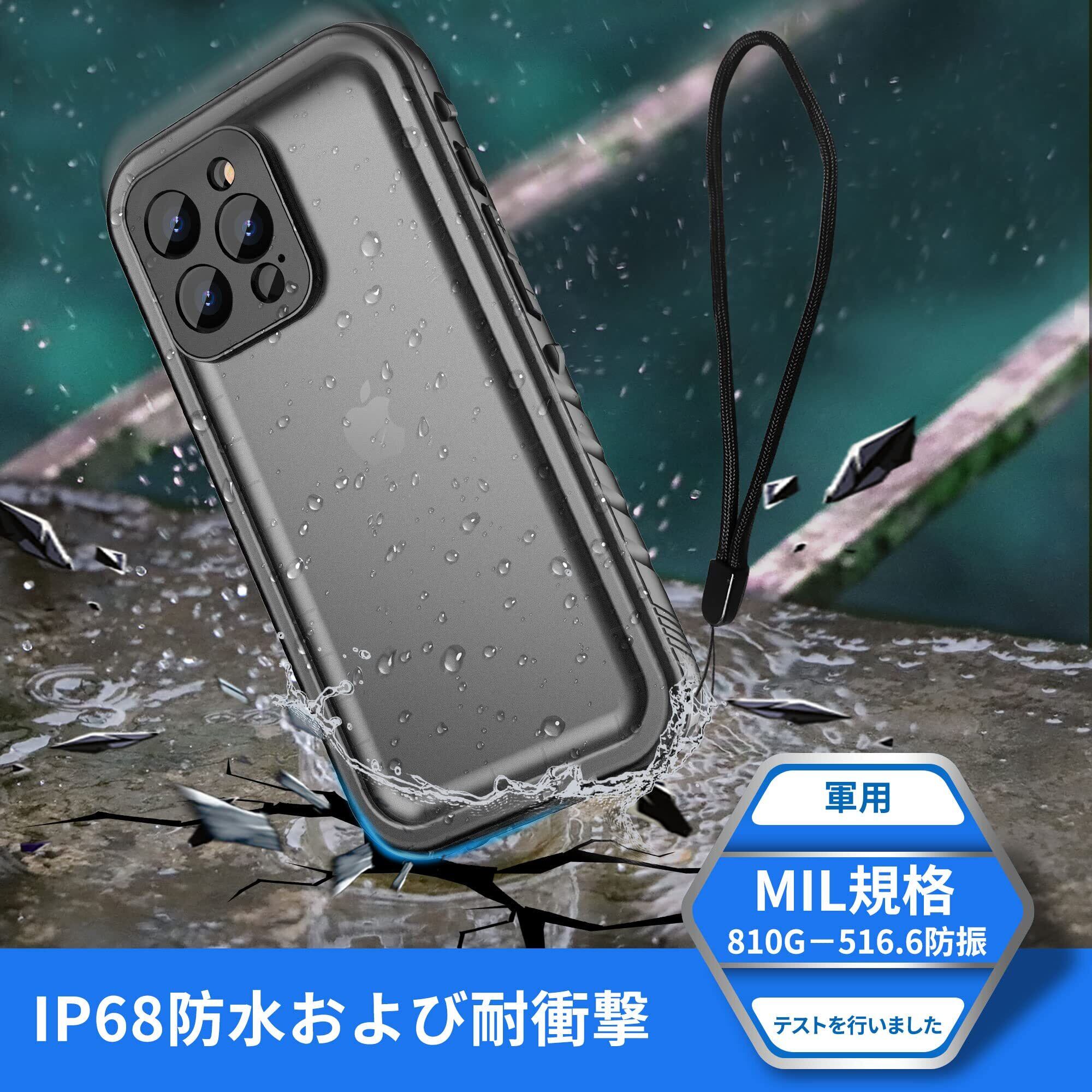 SPORTLINK iPhone 13 Pro Max 用 防水ケース - いPhone 13 Pro Max ケース 完全防水 IP68防水等級 防雪 防塵 耐衝撃 360°全面保護 QI充電 フェイスID 認証対応 操作便利 超薄型 iPhone 13 プロマックス 防水ケースストラップ付き 雨の日 アイフォン 13 Pro Max ケースお風呂など適用 6.7インチ 適用 (ブラック)