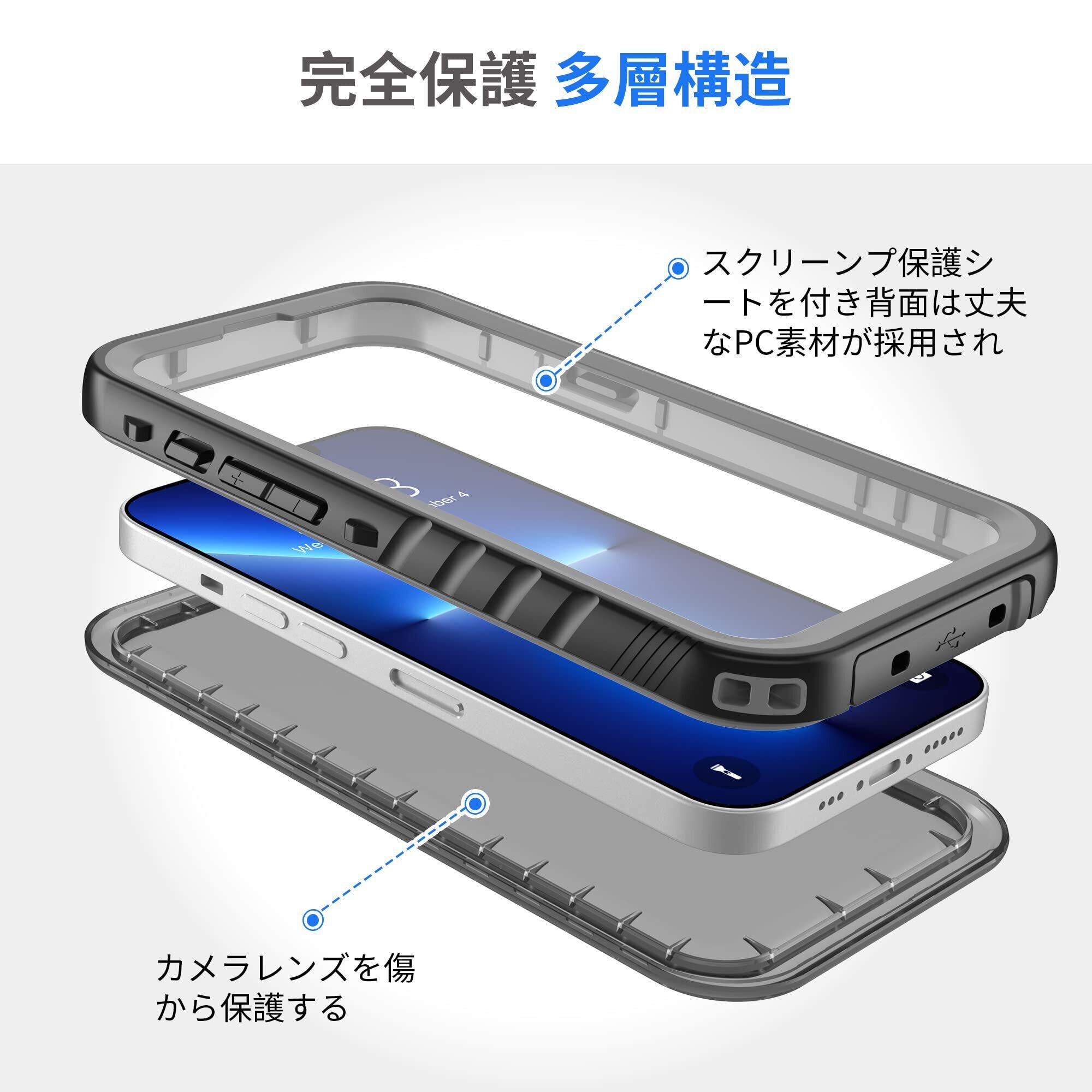 【IP68規格&完全防水】iPhone13 プロマックス 防水ケースは完全密封で、IP68防水規格等級を取得しておりました。水深さ2mの水中に1時間まで水没できます。また 釣り、お風呂、夏のプール、雨の日、冬のスキーいろいろな場合でも、いつもで安心してご利用いいただけます。