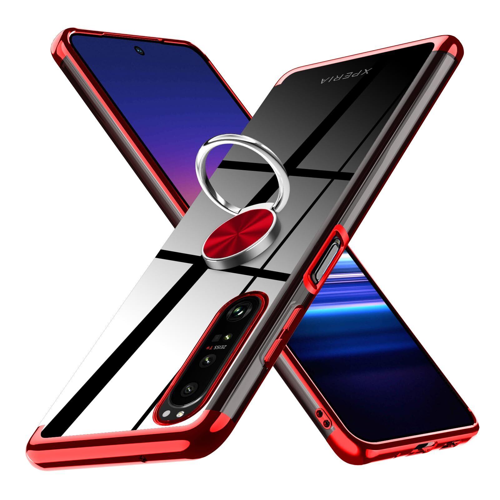 Xperia1 III ケース リング クリア 耐衝撃 SO-51B SOG03 カバー 透明 TPU 軽量 薄型 ストラップホール付き 黄変防止 360°回転 車載ホルダー 赤 2-Xp1 iii-03