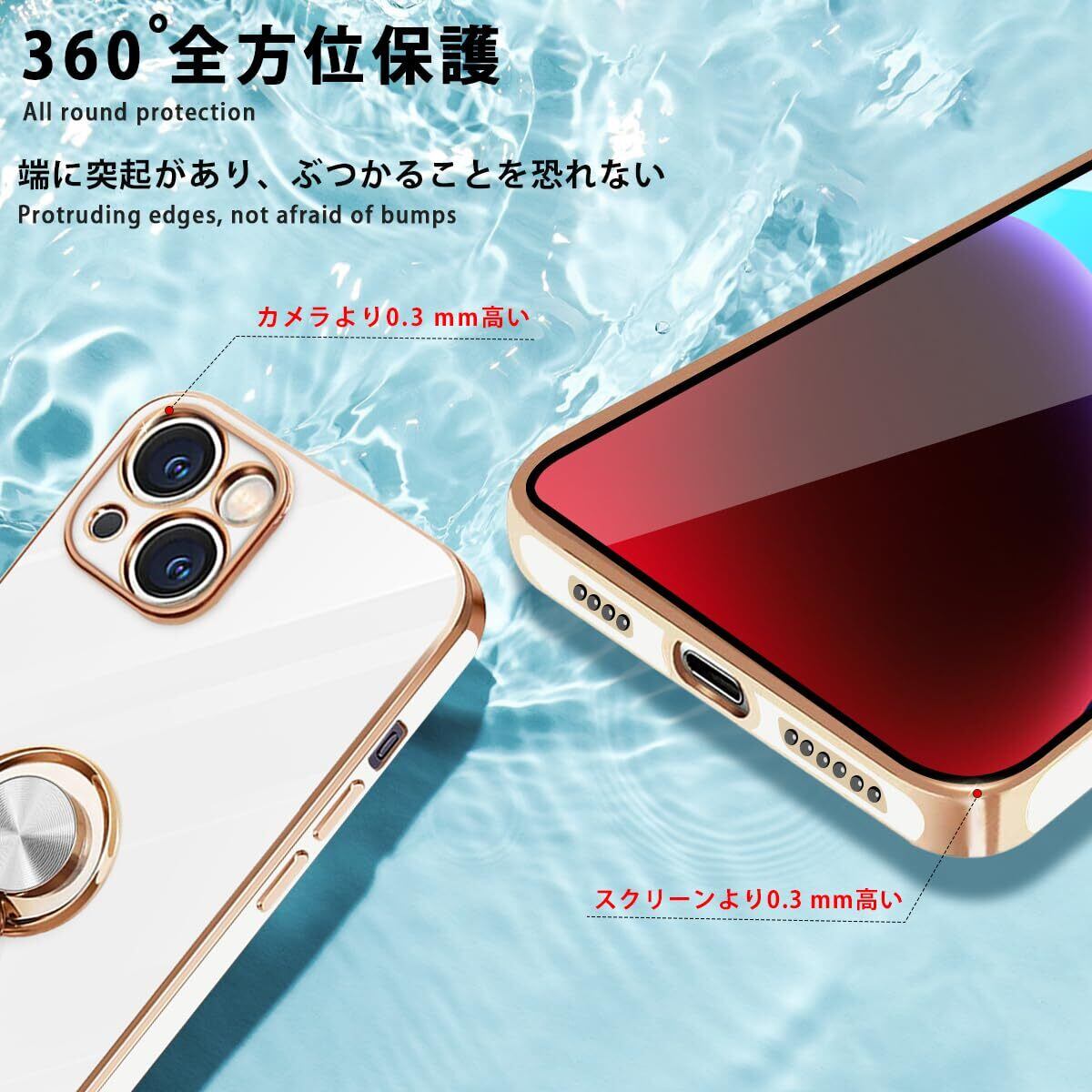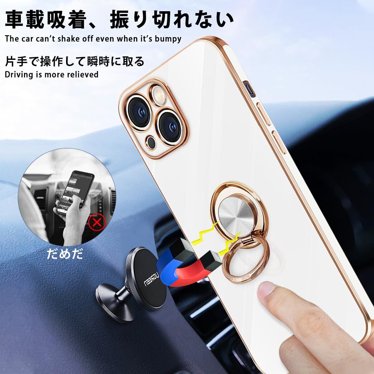 iPhone 14 ケース リング 耐衝撃 360°回転 スタンド機能 車載ホルダー対応 アイフォン 14 カバー ス iPhone14マホケース 携帯ケース 保護カバー レンズ保護 ストラップホール付き 6.1インチ (ホワイト)