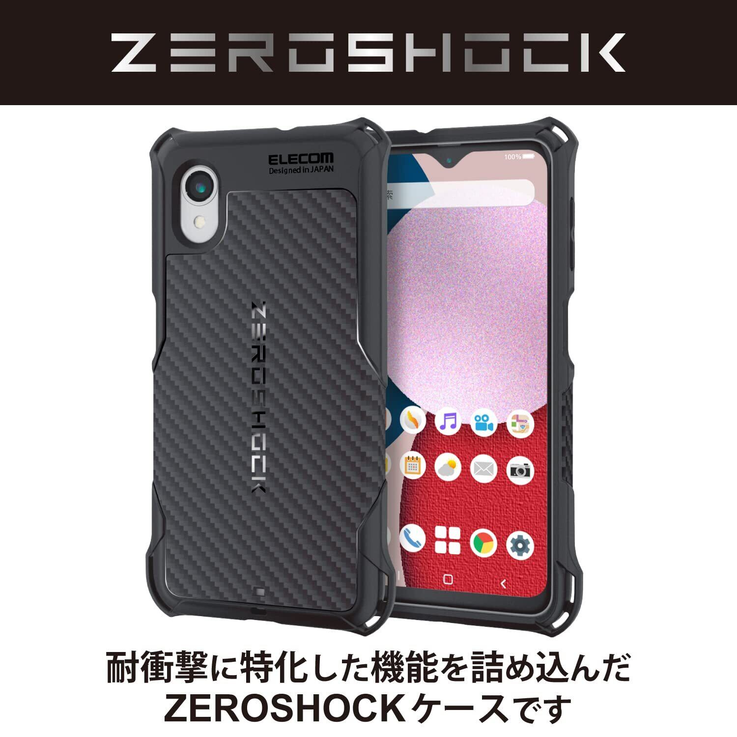 エレコム Galaxy A23 5G [ SC-56C | SCG18 ] ケース カバー 耐衝撃 衝撃吸収 ZEROSHOCK カーボンデザイン 握りやすさを追求 軽量 [四つ角ダンパー/ハニカム構造/TPU素材] ストラップホール付き ブラック PMWG227ZEROGBK