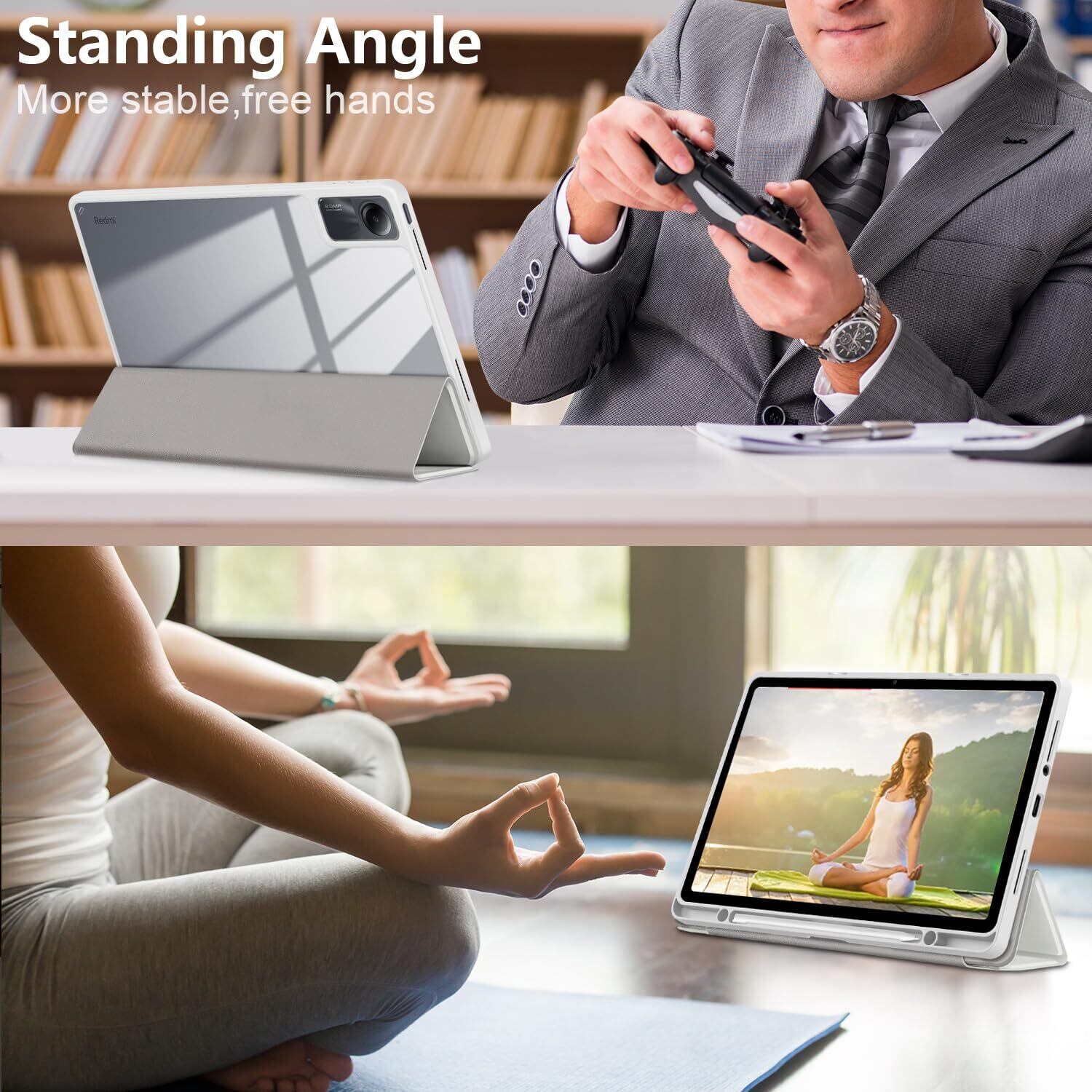 【スタンド機能】内蔵マグネットで固定され、横置きでスタンド機能も付き、好きな角度を調節し、動画鑑賞、読書などを楽しめます。