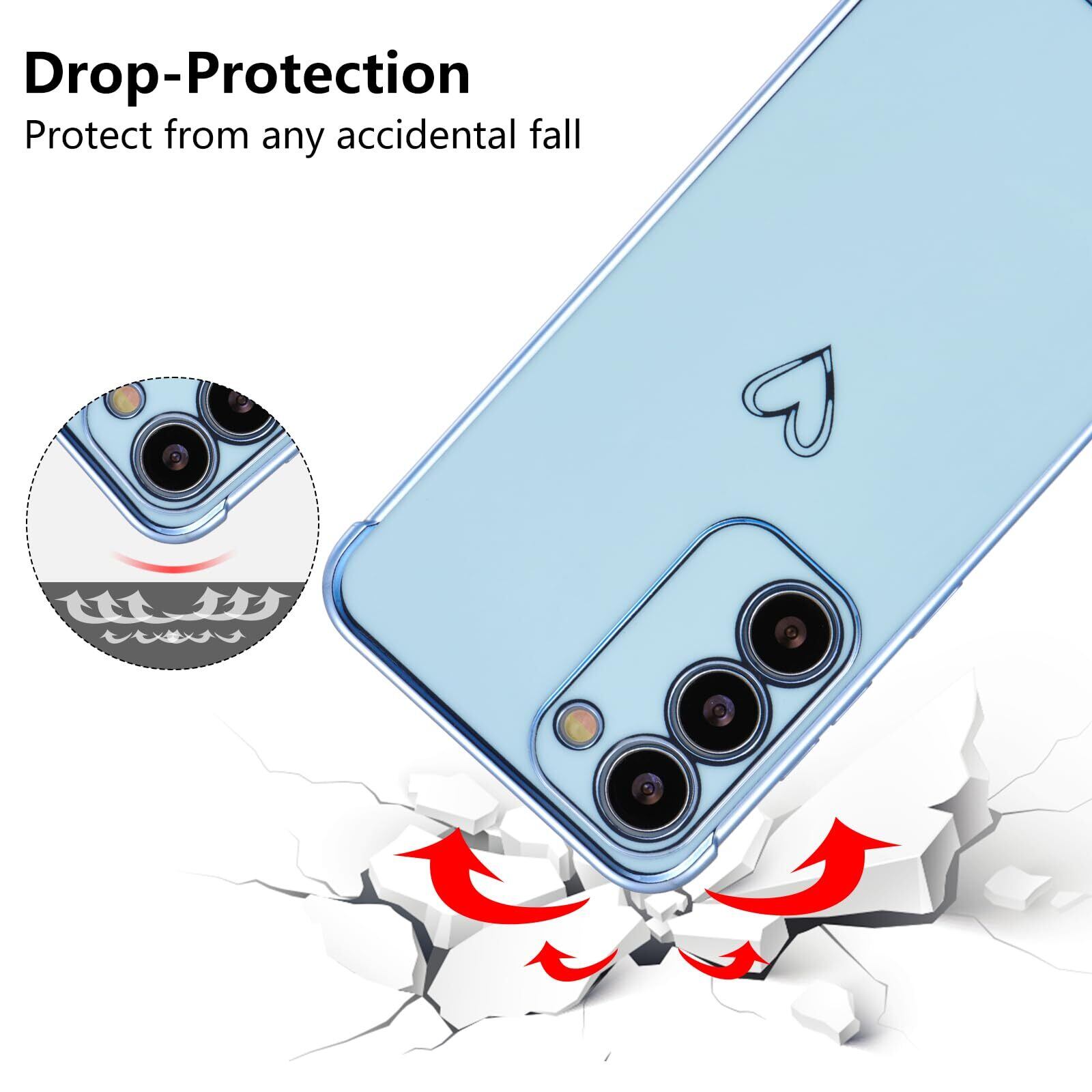 ZTOFERA Samsung Galaxy S23 用 ハートケース 柔軟な TPU シリコン メッキ加工 ソフト 軽量 耐衝撃 おしゃれ 韓国 可愛い Galaxy S23 5G ケース 携帯カバー 女性 心パターン スマホケース ワイヤレス充電対応 (シエラブルー)