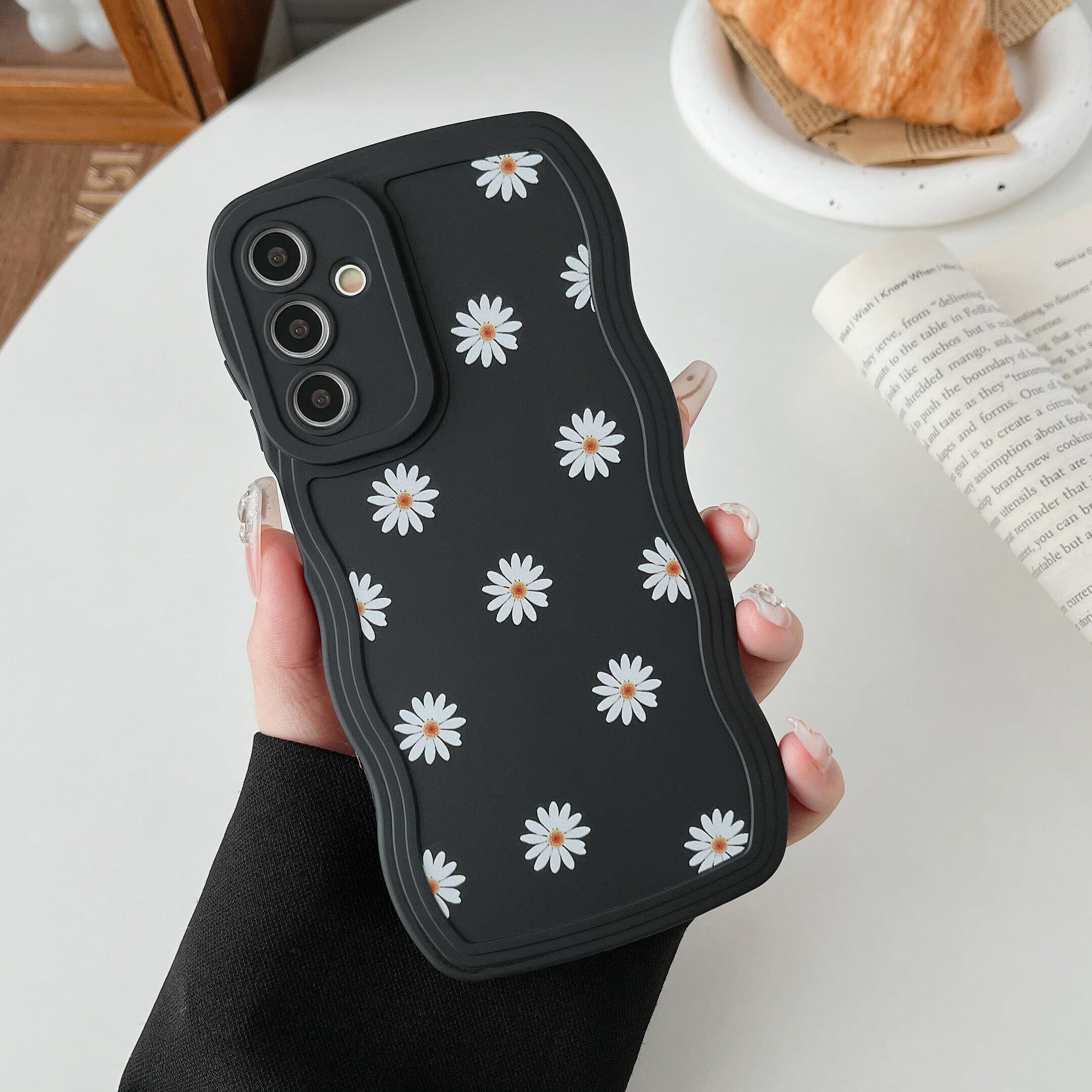 ZTOFERA Samsung Galaxy S23 FE 5G ケース用、波状フレームケース、デイジーパターンのかわいい電話カバー Samsung S23 FE 用、ブラック