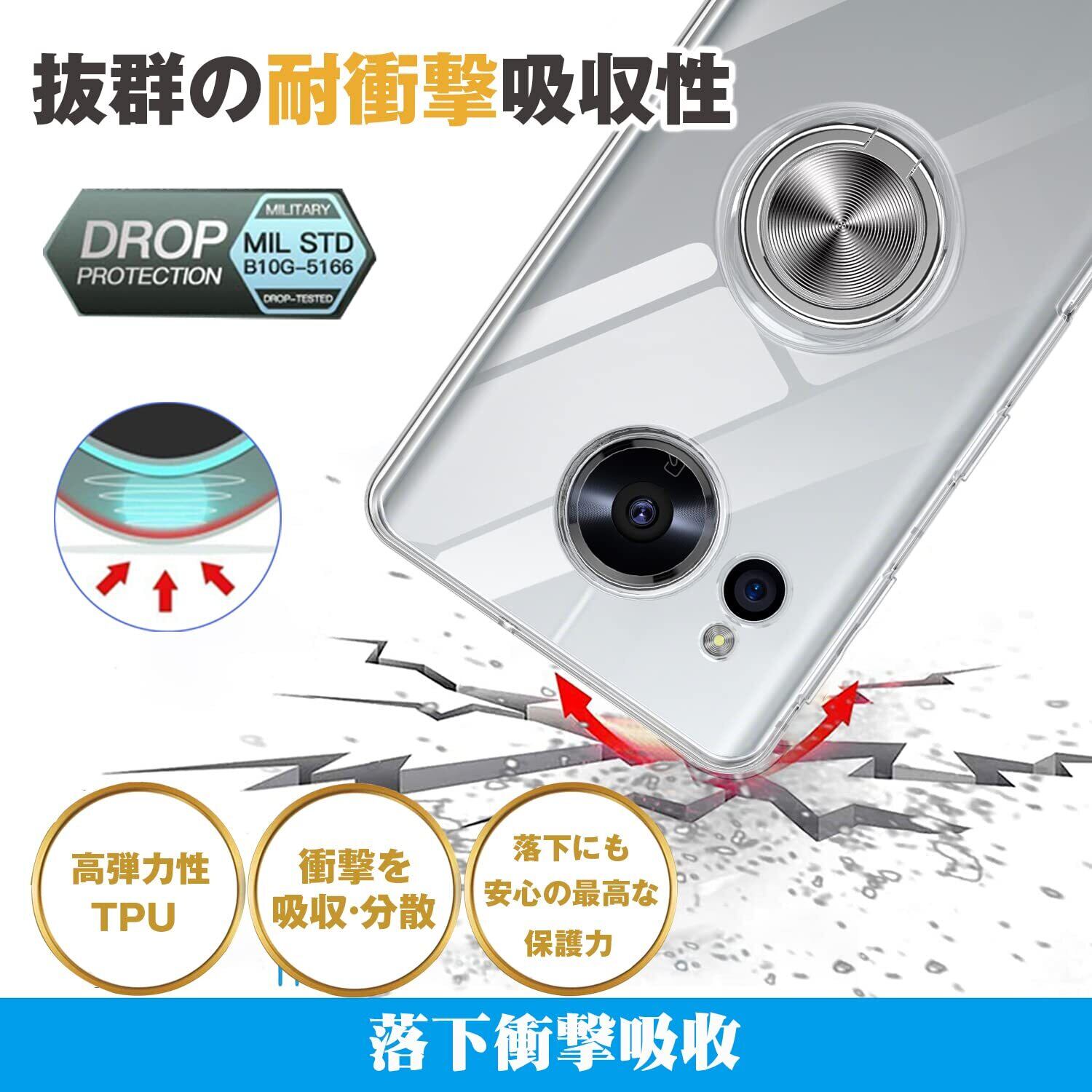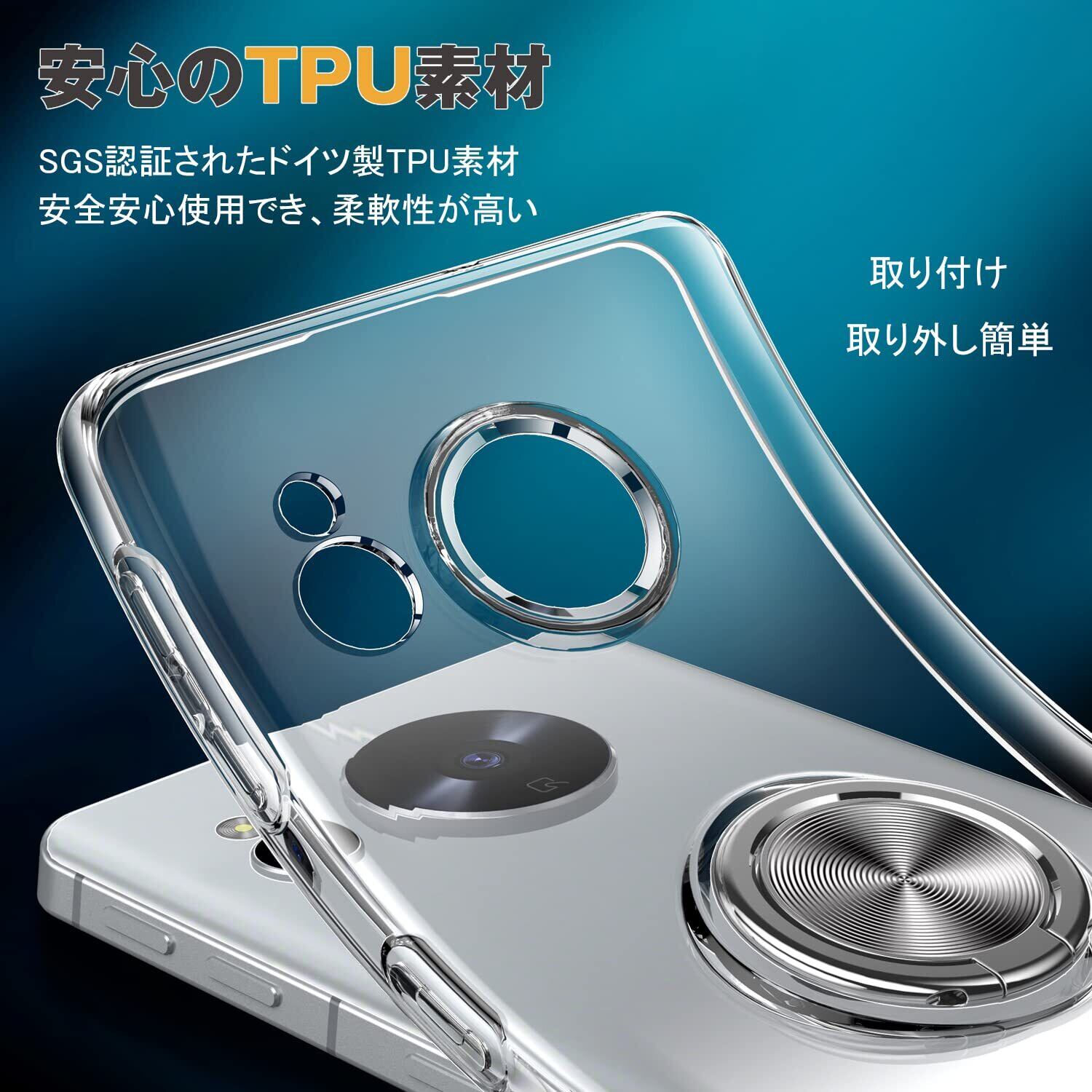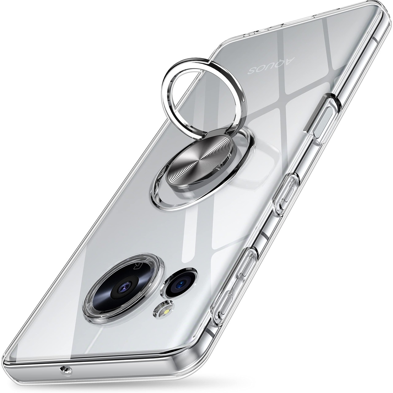 AQUOS sense7 ケース リング付き SHARP アクオスセンス7 / SH-53C / SHG10 用 カバー OURJOY スマホケース 透明 耐衝撃 スタンド 携帯ケース 軽量 薄型 おしゃれ 車載ホルダー • クリア
