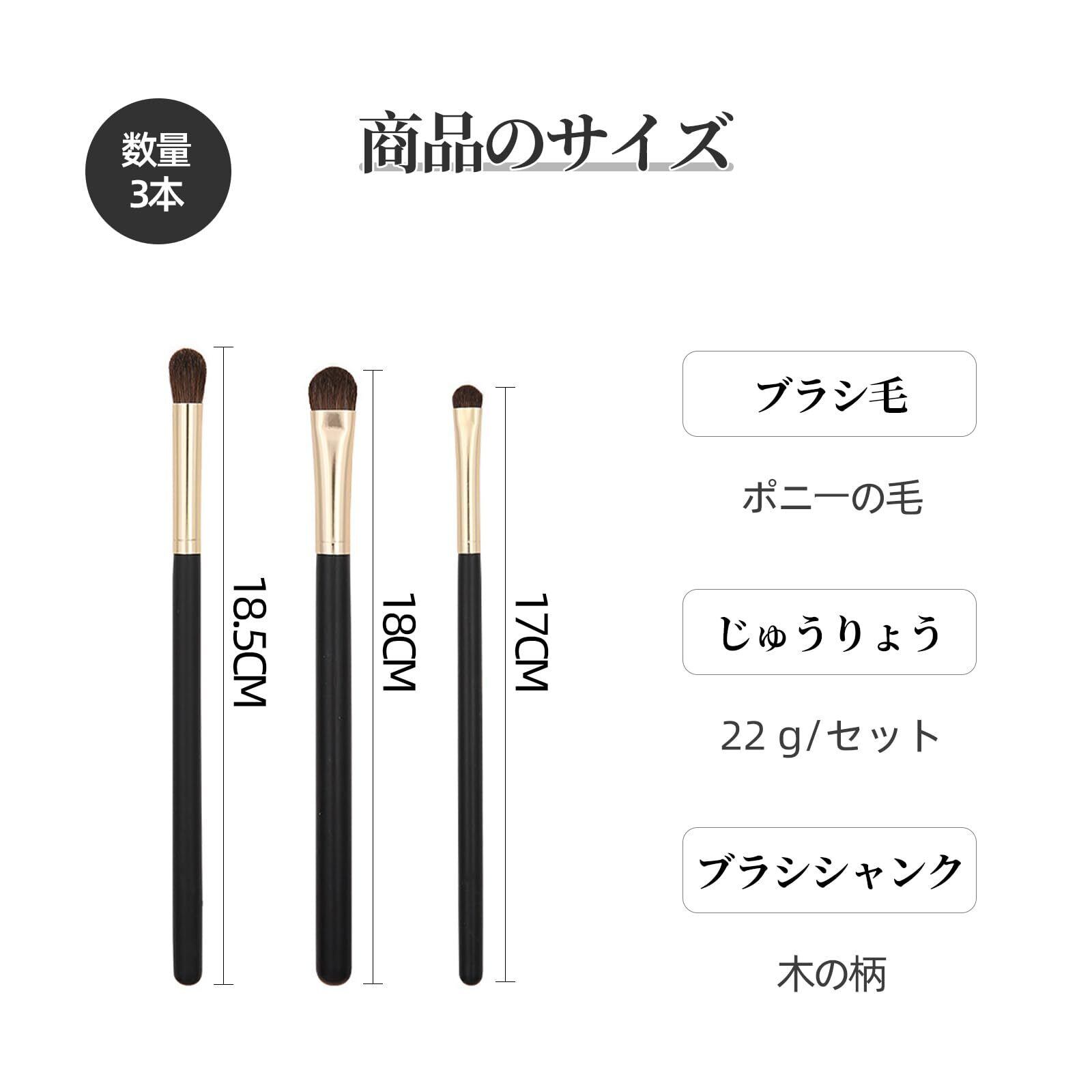 【商品仕様】:アイシャドーブラシは3本セット、S、M、Lの3サイズでメイクの使い分けに便利。ナチュラルメークからパーティーメイクまで、このワンセットでばっちり。