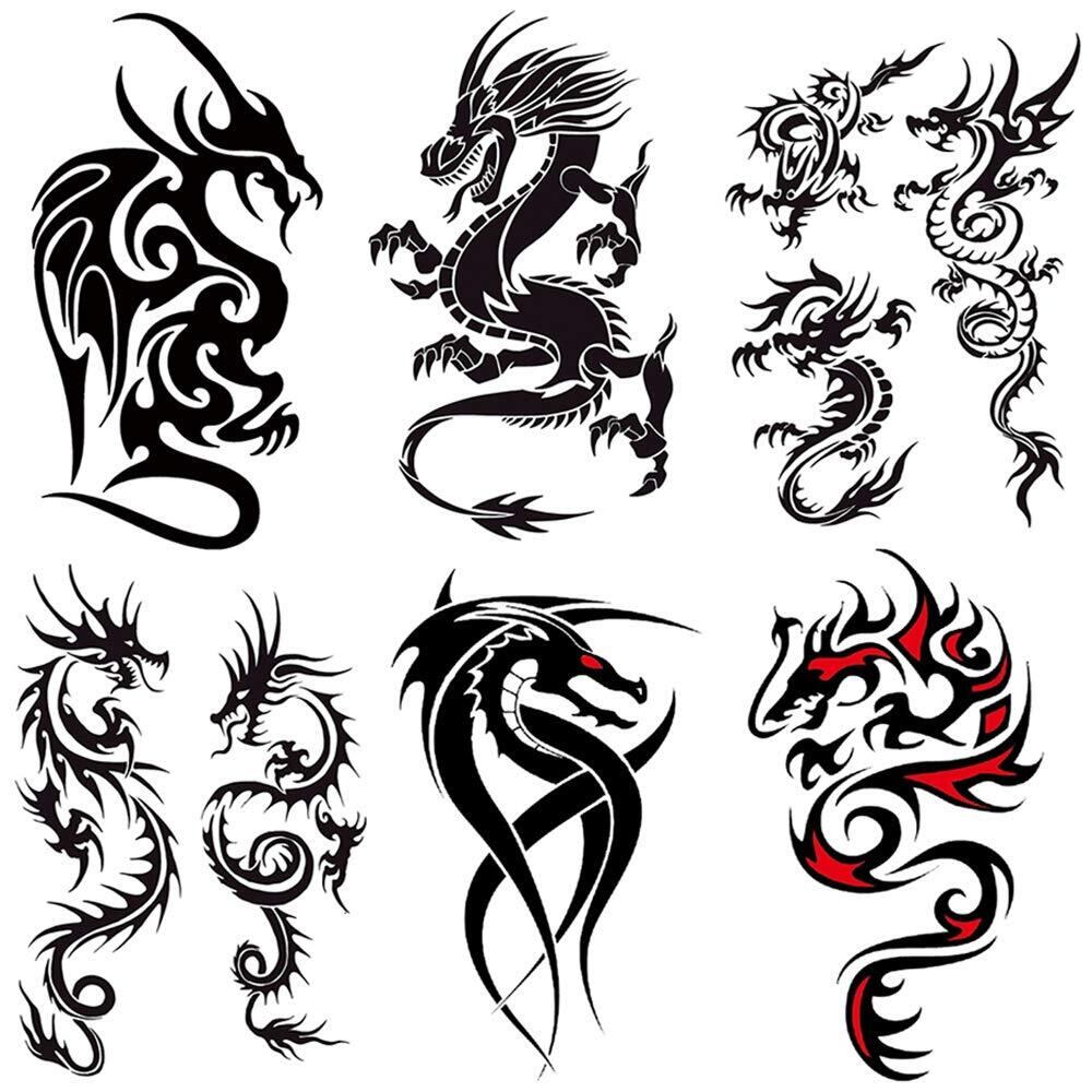 Yesallwas タトゥーシール 龍 飛竜 6枚セット 黒 竜 入れ墨シール タトゥーステッカー ボディーシール 刺青シール 長持ち 防水 メンズ 約12cm×19cm