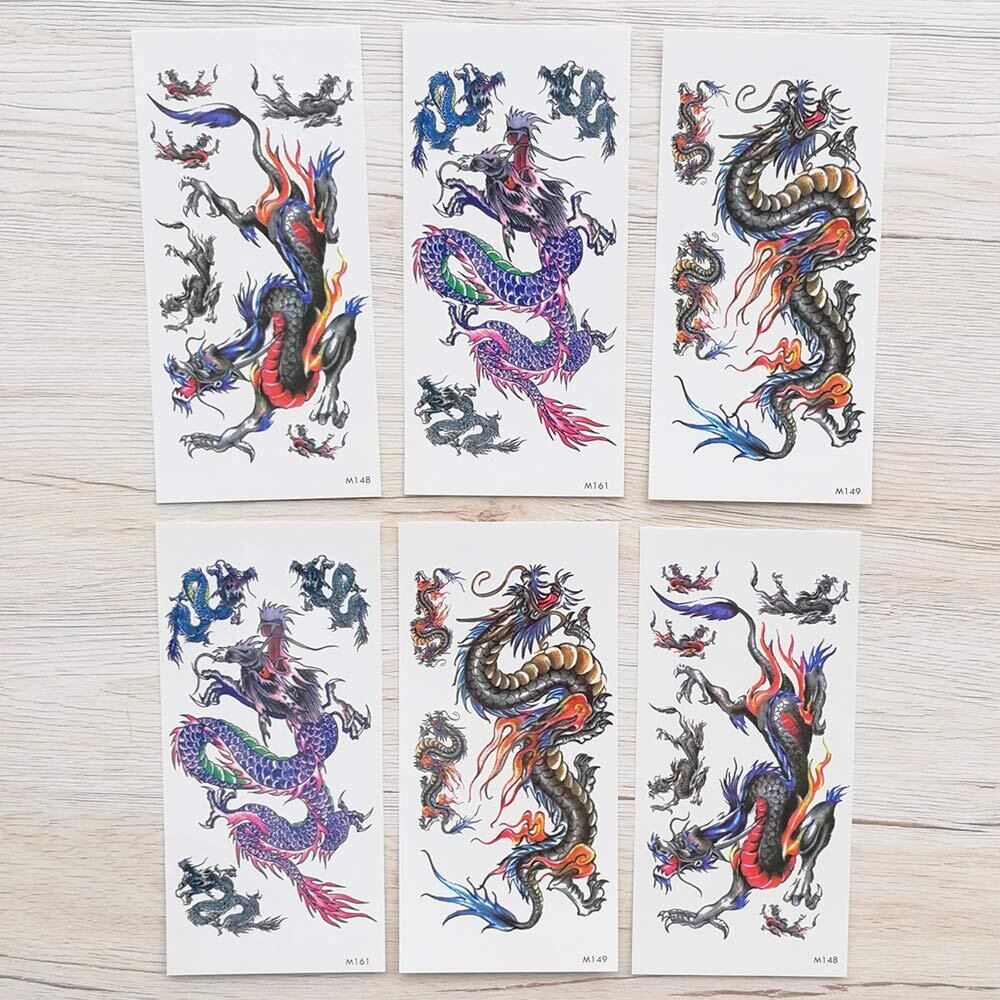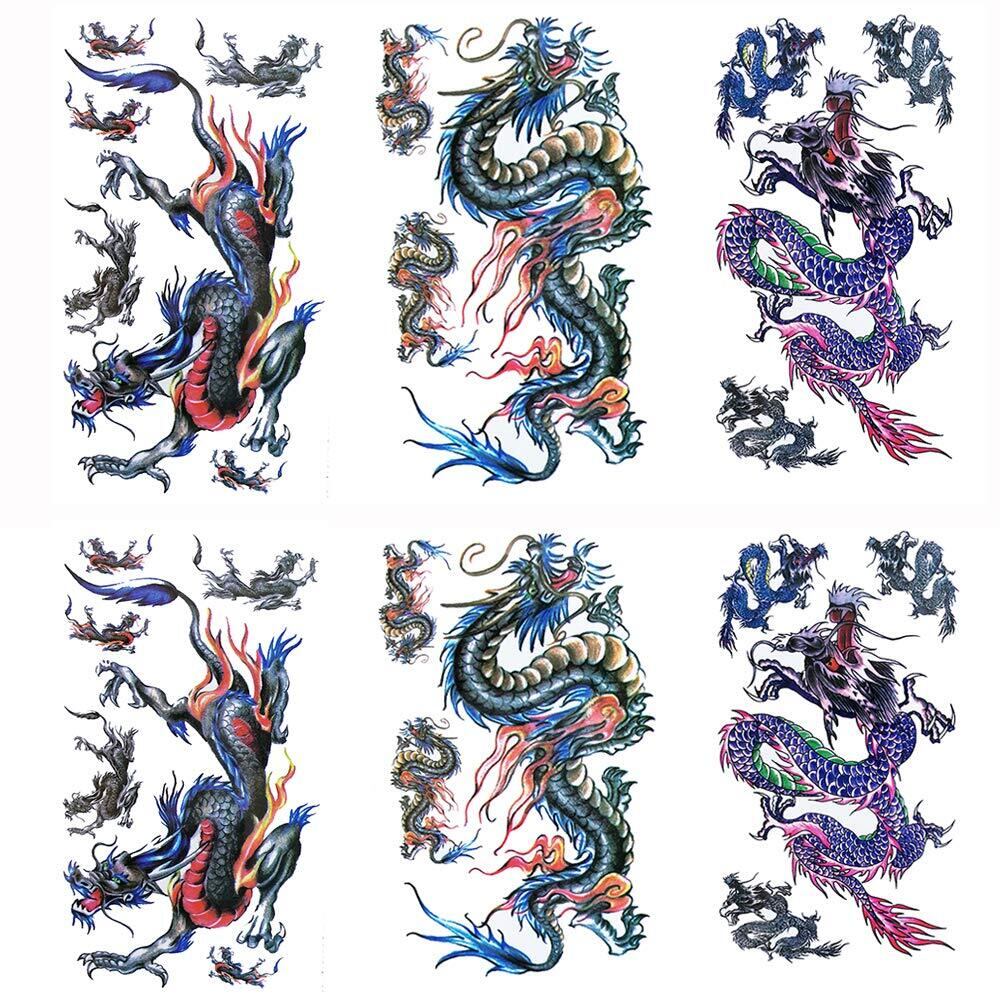 【特価セール】Yesallwas タトゥーシール 龍 竜 飛竜 6枚セット 入れ墨シール リアル 和柄 和彫り タトゥーステッカー ボディーシール 刺青シール 防水 メンズ (F.6枚セット(9×19cm)) | allstore3