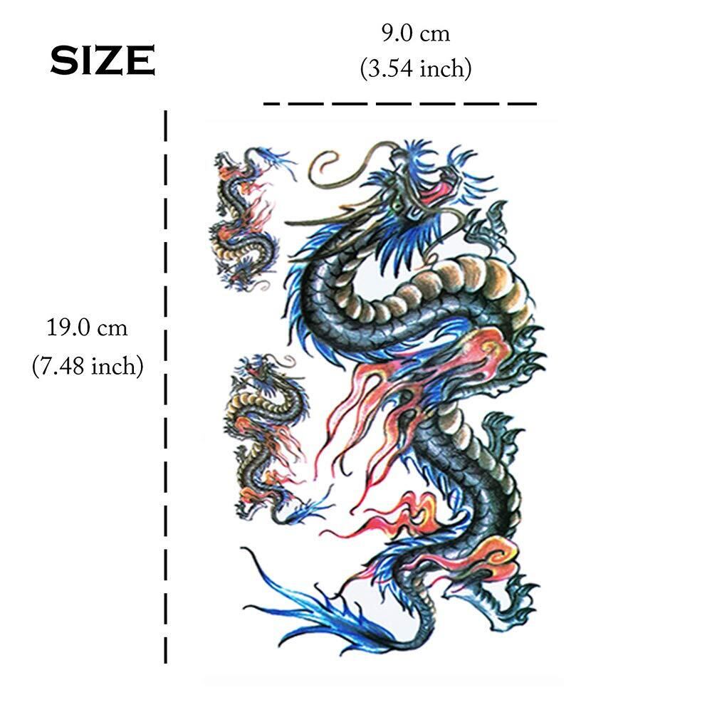 Yesallwas タトゥーシール 龍 竜 飛竜 6枚セット 入れ墨シール リアル 和柄 和彫り タトゥーステッカー ボディーシール 刺青シール 防水 メンズ (F.6枚セット(9×19cm))