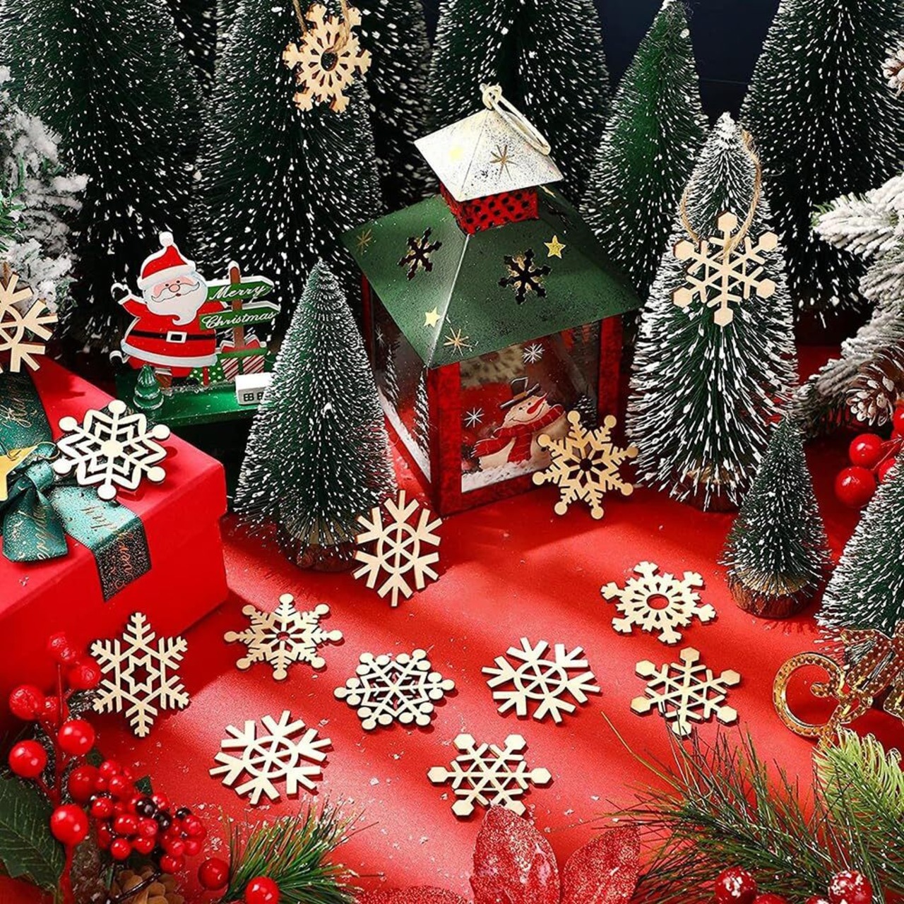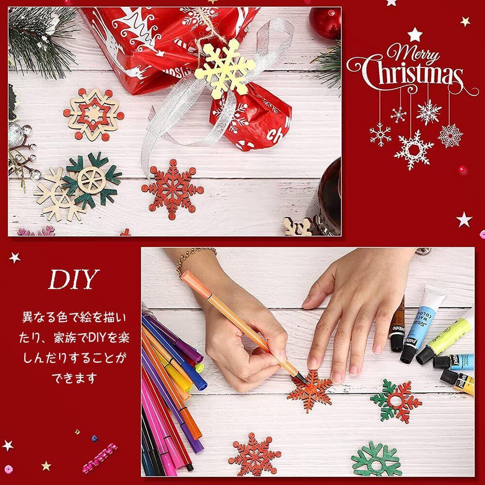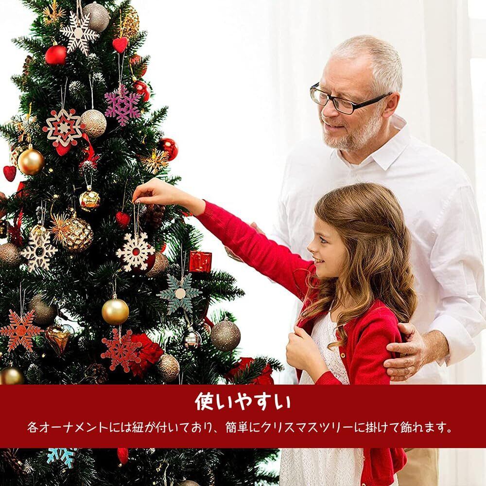 【素材】雪の結晶の飾りは高品質の木材で作られており、安全で環境に優しく、無臭・無害です。軽量で持ち運びが簡単で、形がかわいくて、お祭りの雰囲気がいっぱいです。
