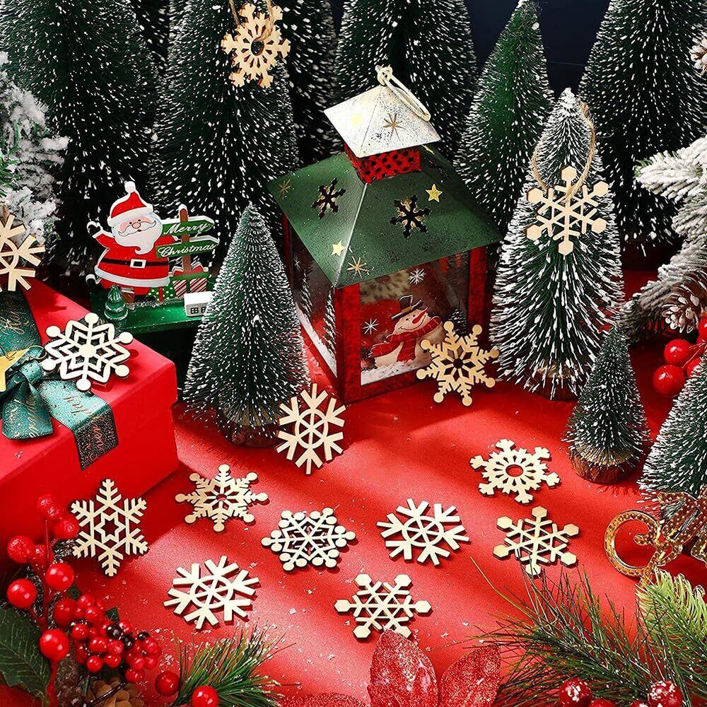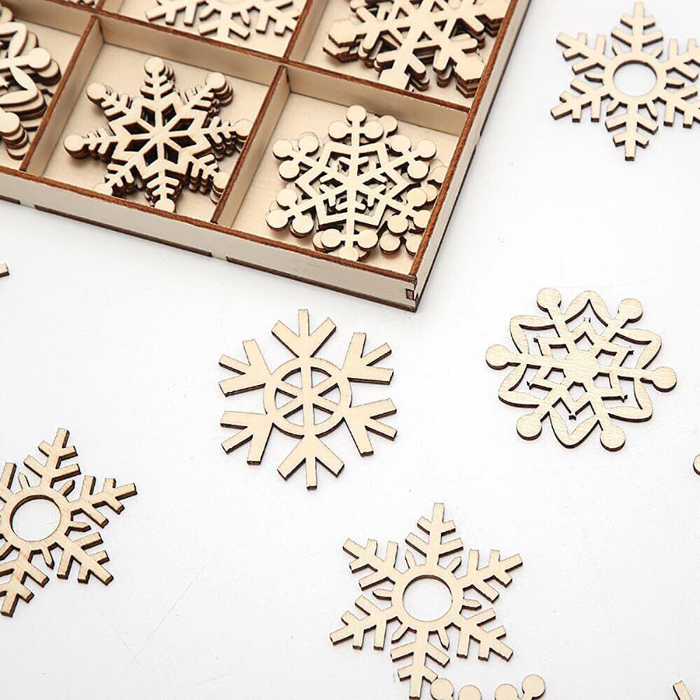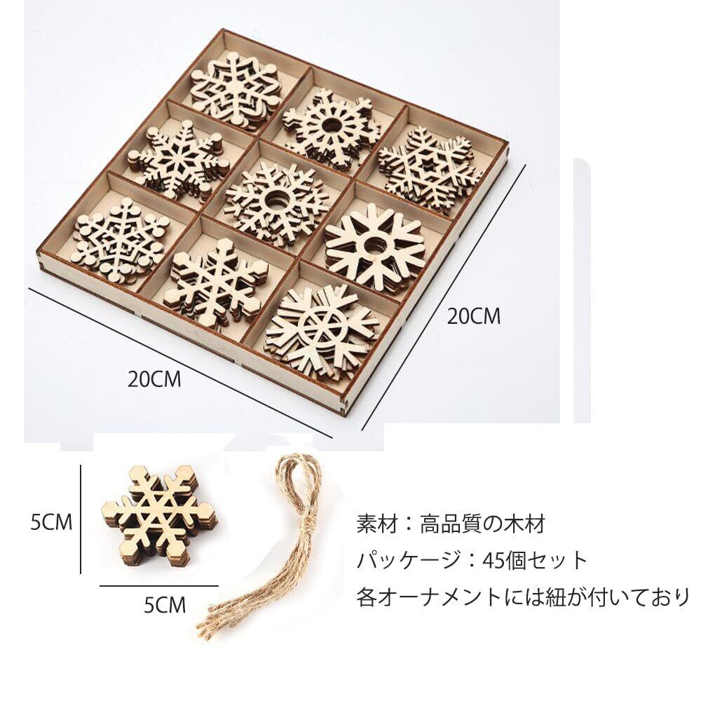 GOODCHI クリスマス オーナメント 木製 北欧 雪の結晶 木材チップ 木製スライス クリスマスツリー 飾り 手作り DIY 小物 ギフトタグ 45個セット