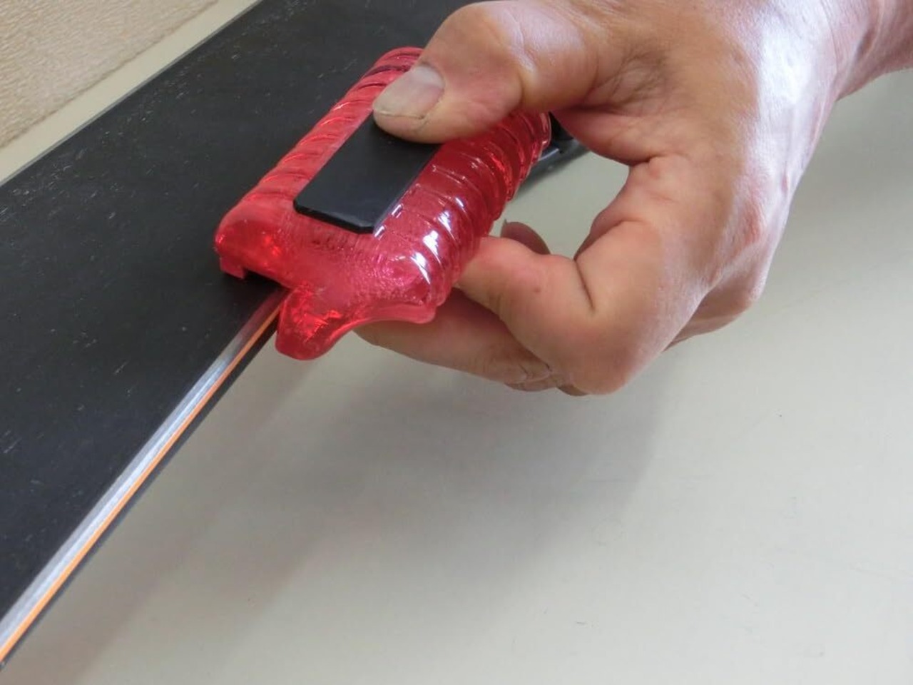 本体にサンドペーパーを貼ってエッジにあてこするだけ!