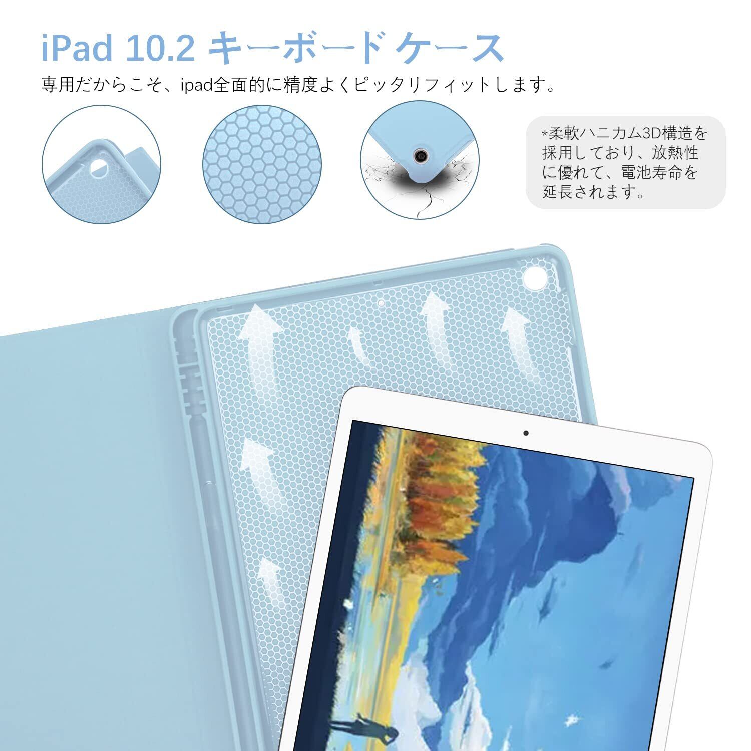 iPad 10.2 ケース 第9/8/7世代 Bluetooth キーボード付きカバー iPad通用 脱着式 ペンホルダー付き スタンド機能 オートスリープ機能 多角度調整 傷つけ防止 耐久性 (スカイブルー)