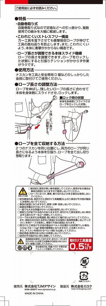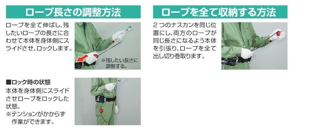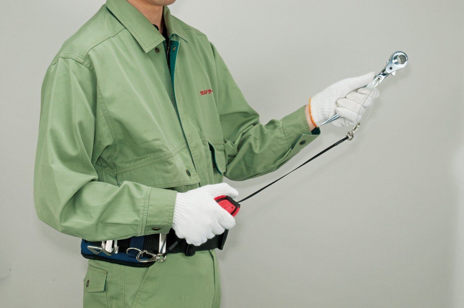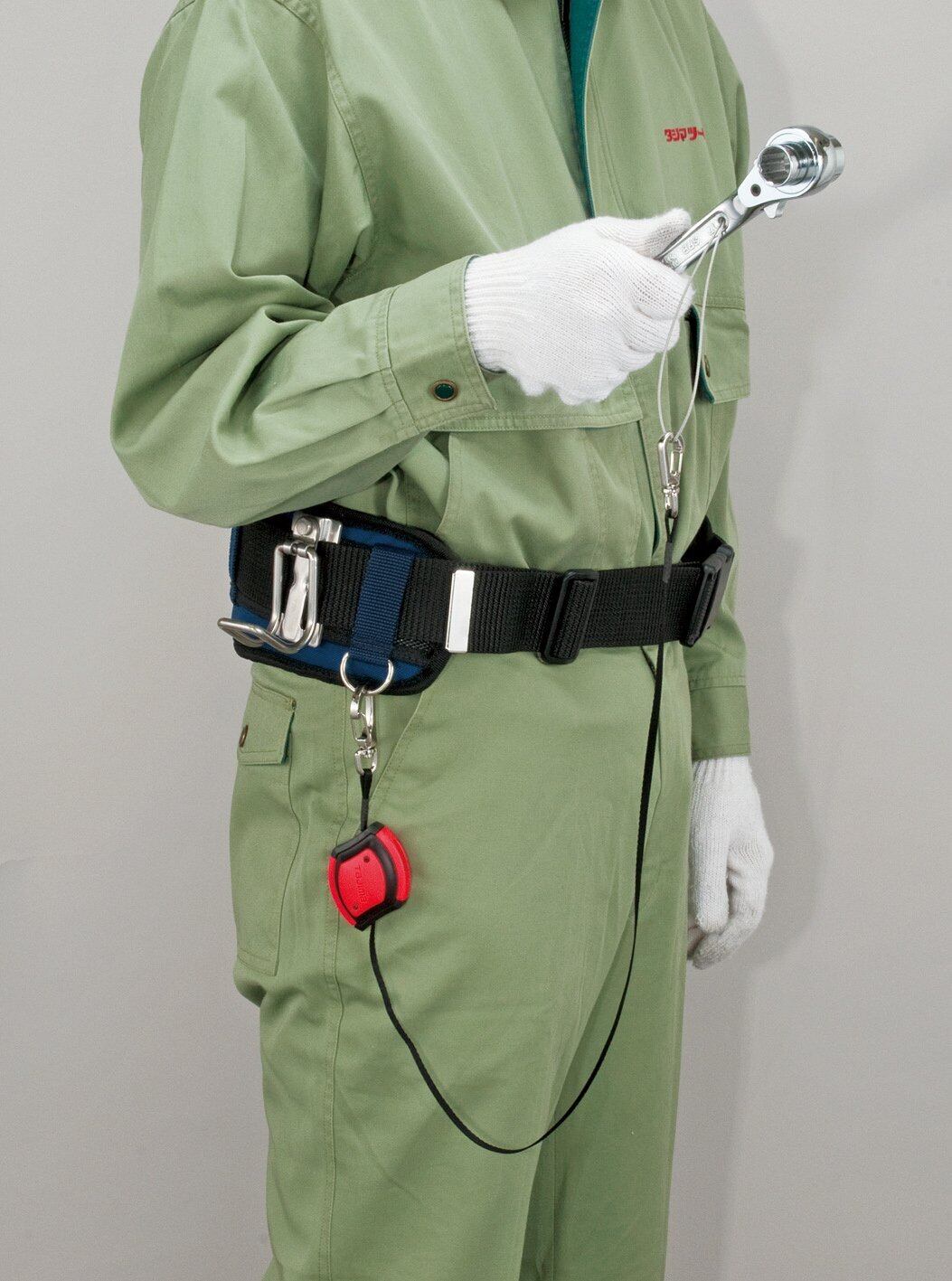 自動巻き取り式で作業時にロープがたるまず、足場などへの引っ掛かりを防止