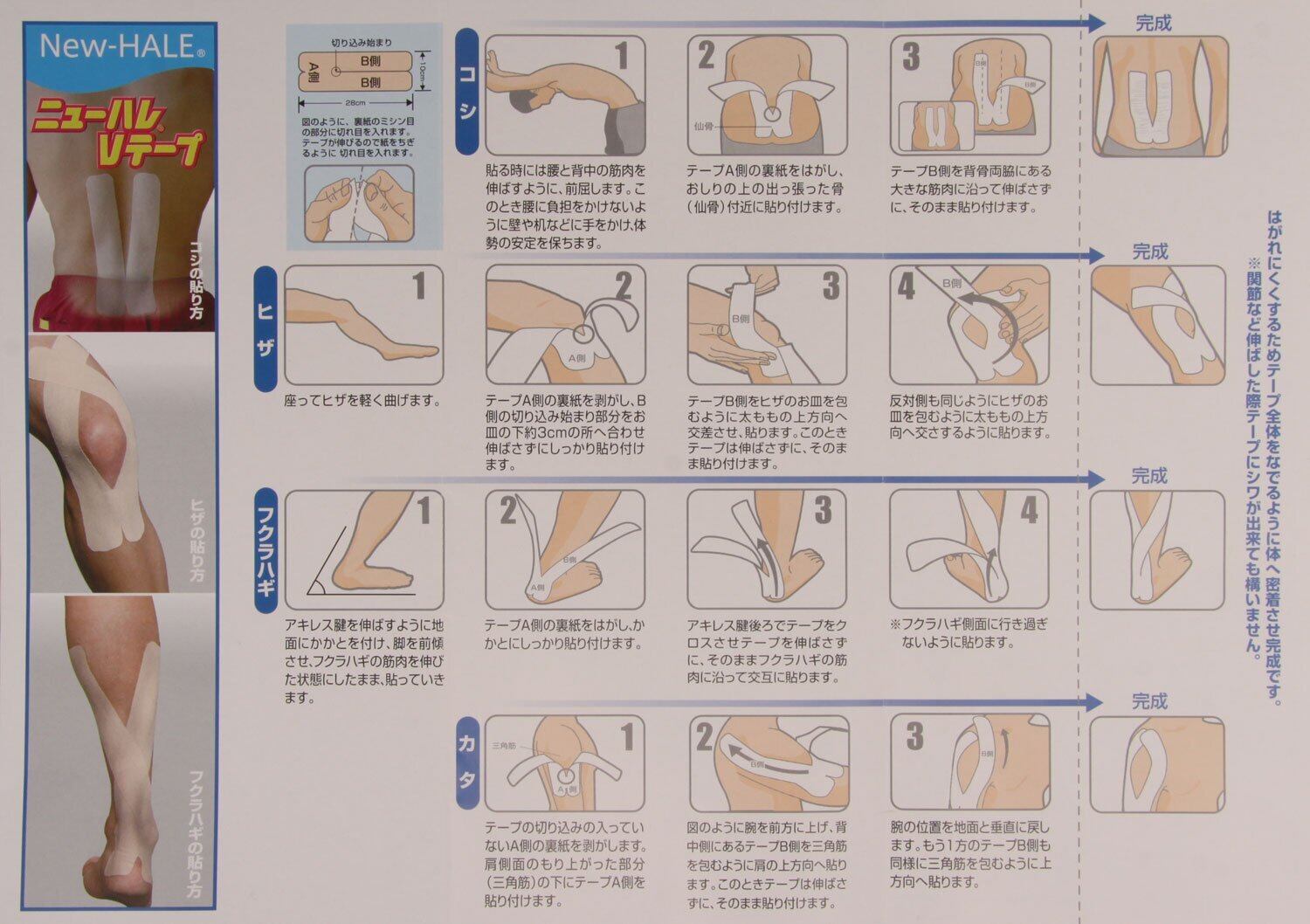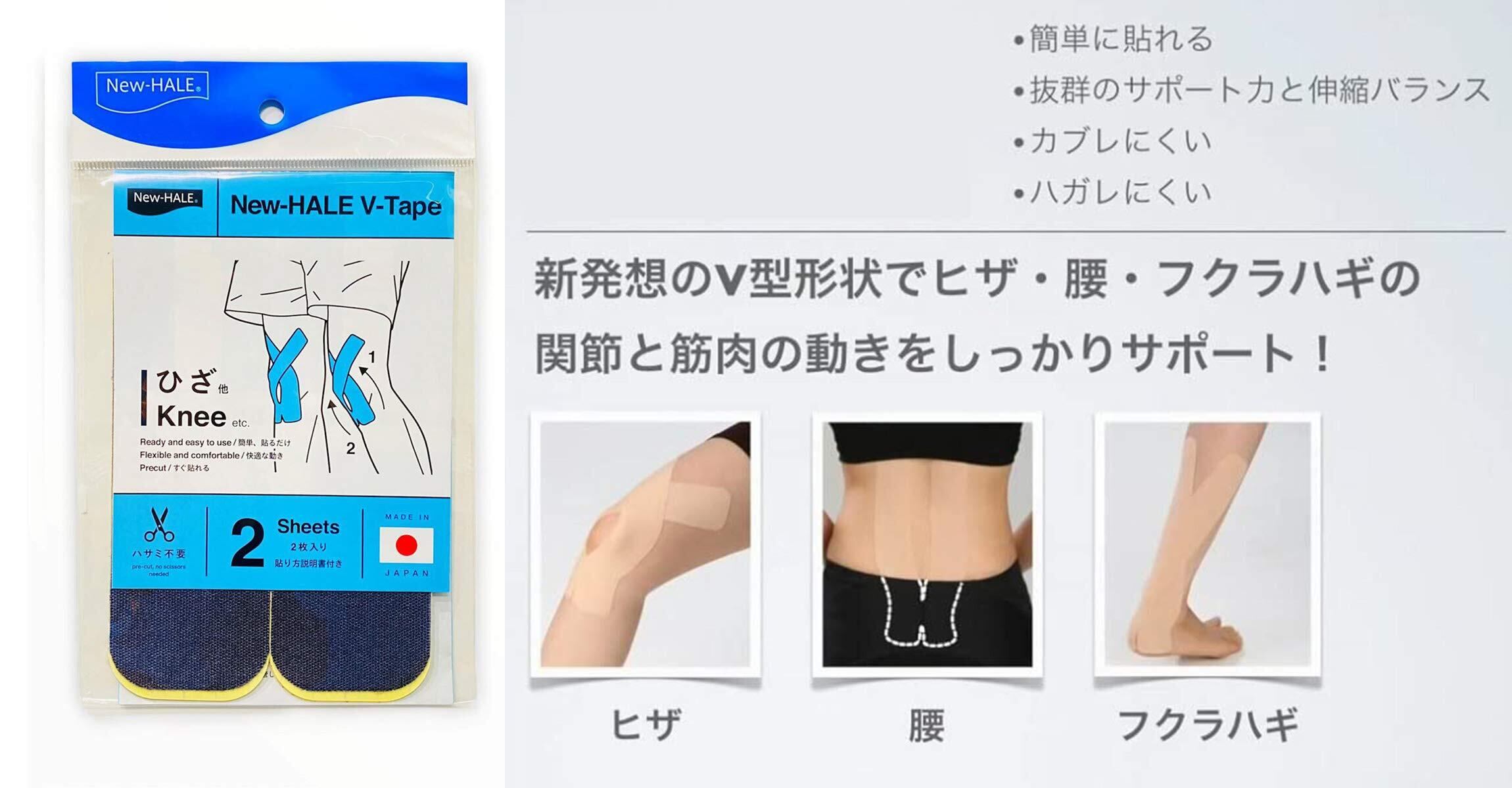 NewHALE(ニューハレ) テーピングテープ すぐ貼れるシリーズ VTAPE 腰 膝 ふくらはぎ 肩 10色展開