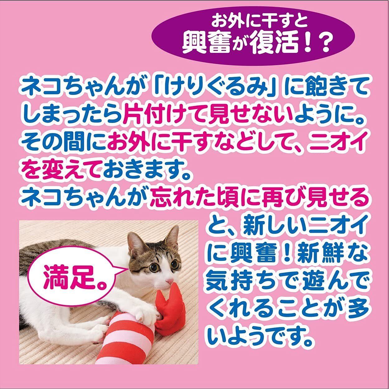 ネコキック専用のぬいぐるみ。ネコキックしやすい細長形状です。またたび入りなのでネコちゃん大興奮!