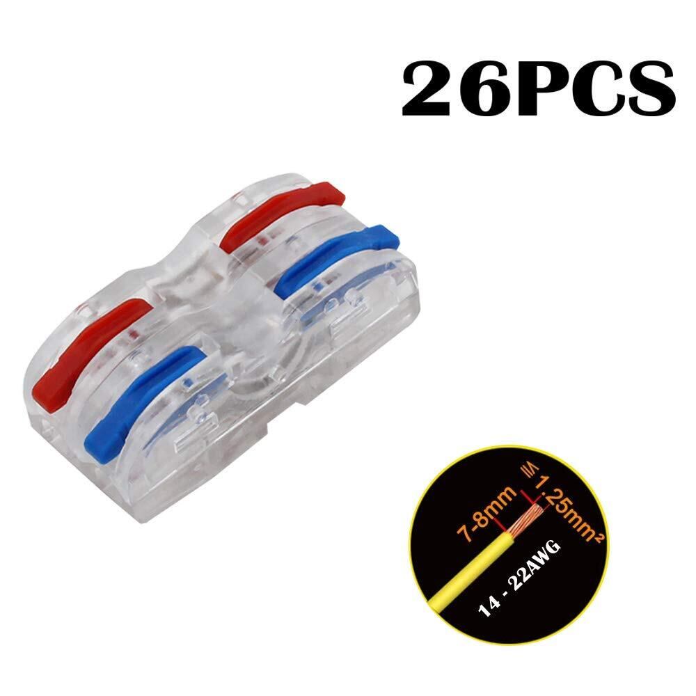 CTRICALVER 固定可能コネクタ、26個双方向シングルホールレバー導体コンパクトコネクタターミナルブロックワイヤープッシュケーブルコネクタ(組み合わせ青+赤)
