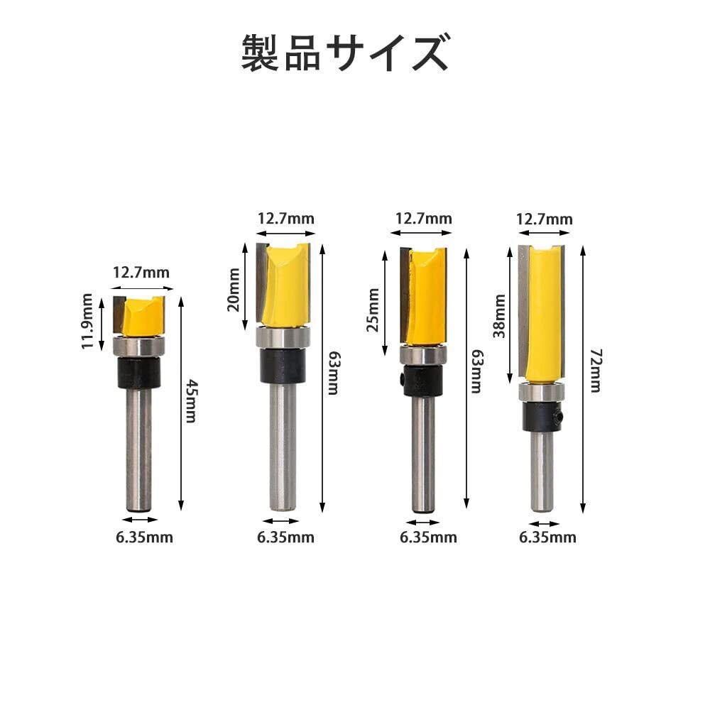 トリマー ビット ストレートビット 4種セット 6.35mmシャンク超硬ルータービット ベアリング トリマー 工具 トリマー ビット木工用 切削工具 戸板彫刻