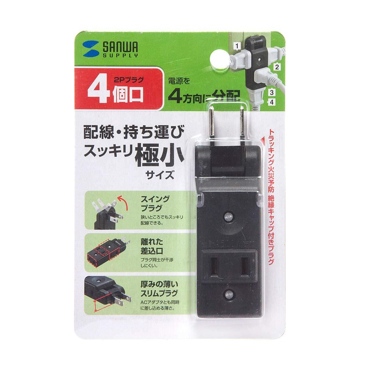 サンワサプライ(Sanwa Supply) スイングミニタップ 2P・4個口 ブラック TAP-AC10BK