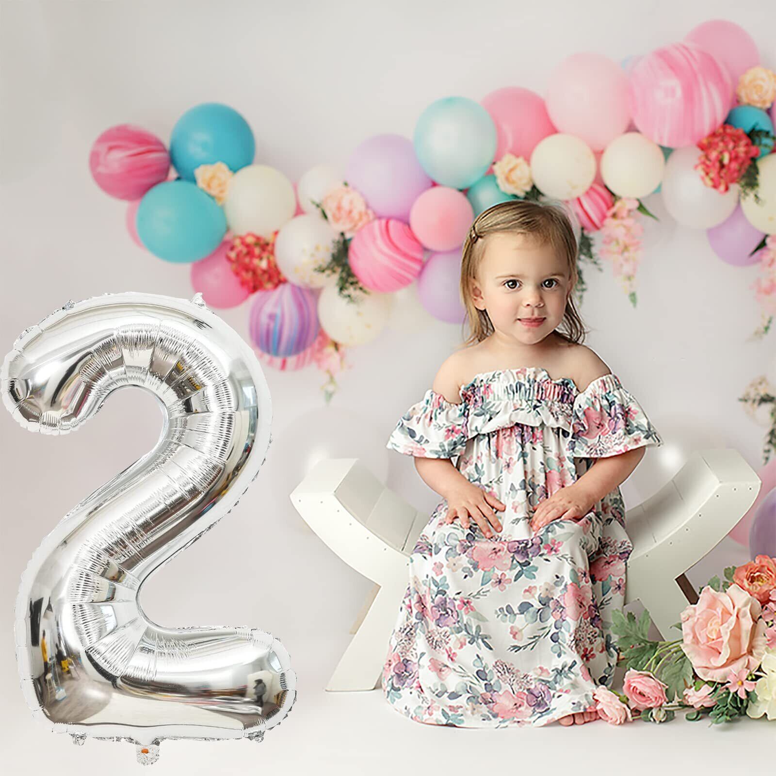 40インチ 数字バルーン シルバー 誕生日風船 数字2アルミ風船 誕生日 ハッピーバースデー 飾り付け ウェディング 記念日 (2, シルバー)