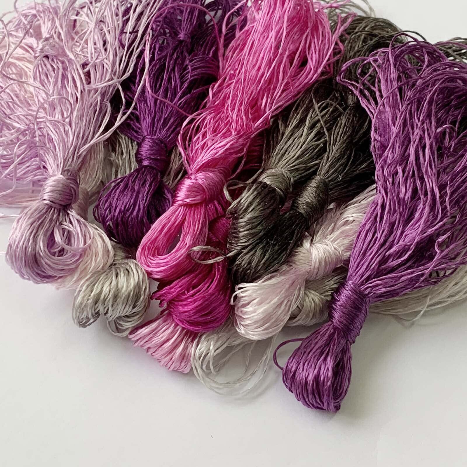 【数量限定】12本 絹糸 光沢きれい 刺しゅう糸 ソーイング糸 手縫い糸 12色 カラー糸 セット 20M/色 計240M (パープル)