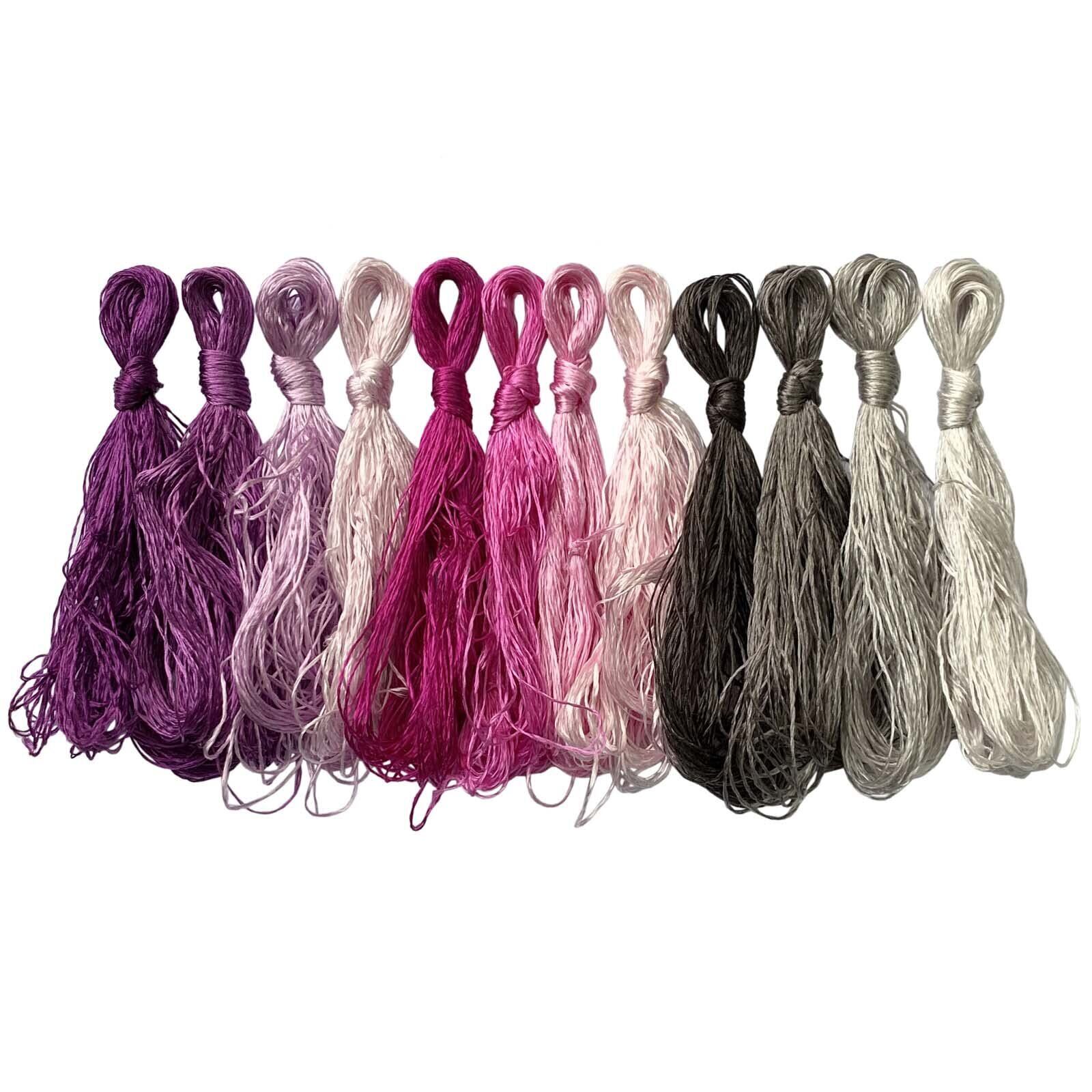 12本 絹糸 光沢きれい 刺しゅう糸 ソーイング糸 手縫い糸 12色 カラー糸 セット 20M/色 計240M (パープル)