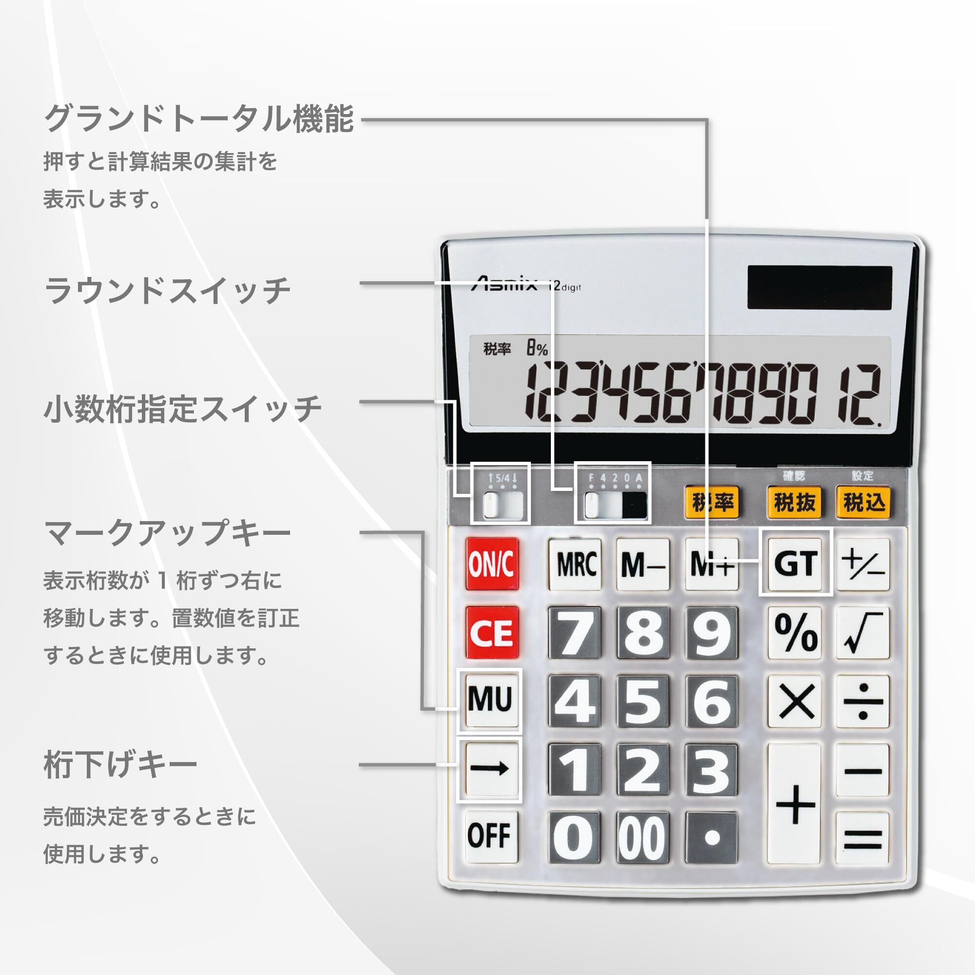 12桁/税計算機能/税設定/早打ち対応/オートパワーオフ