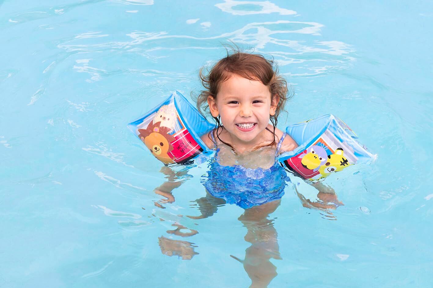 アームリングはお子様の両腕の付け根に装着することで肩から上、つまり頭が沈まないようにする為の浮具です。水泳の練習やレジャーでの溺れ防止にお使い頂けます。動物柄のかわいいデザインで、右と左で異なった絵柄になっています。