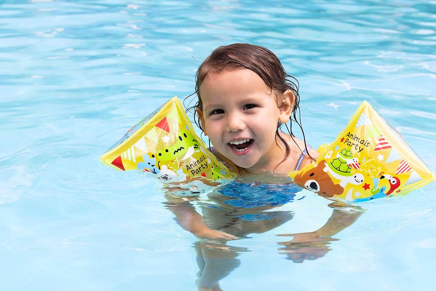 アームリングはお子様の両腕の付け根に装着することで肩から上、つまり頭が沈まないようにする為の浮具です。水泳の練習やレジャーでの溺れ防止にお使い頂けます。動物柄の可愛いデザインで、右と左で異なった絵柄になっています。