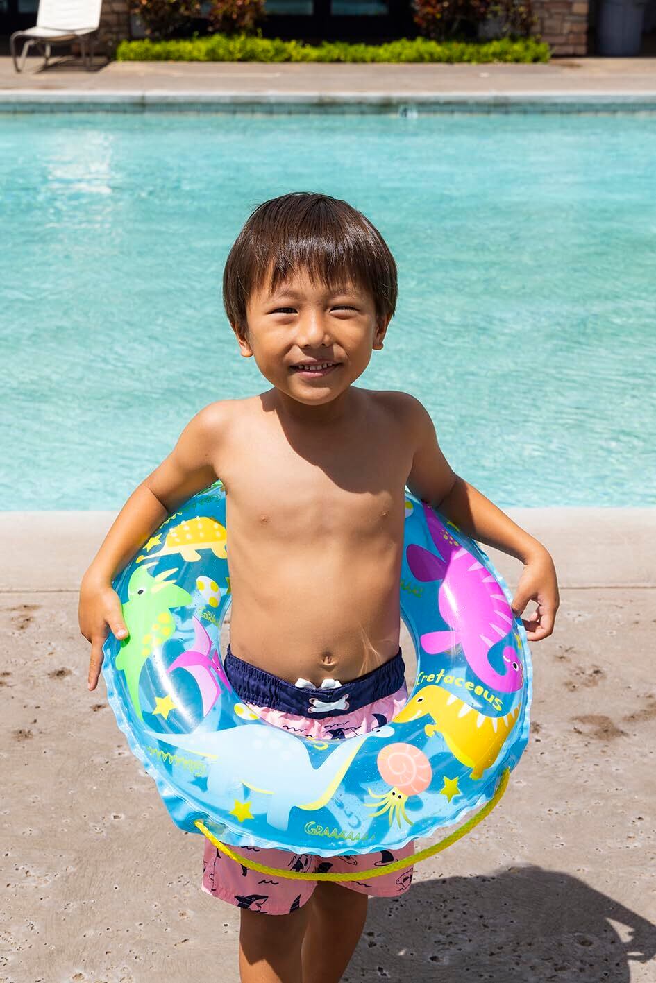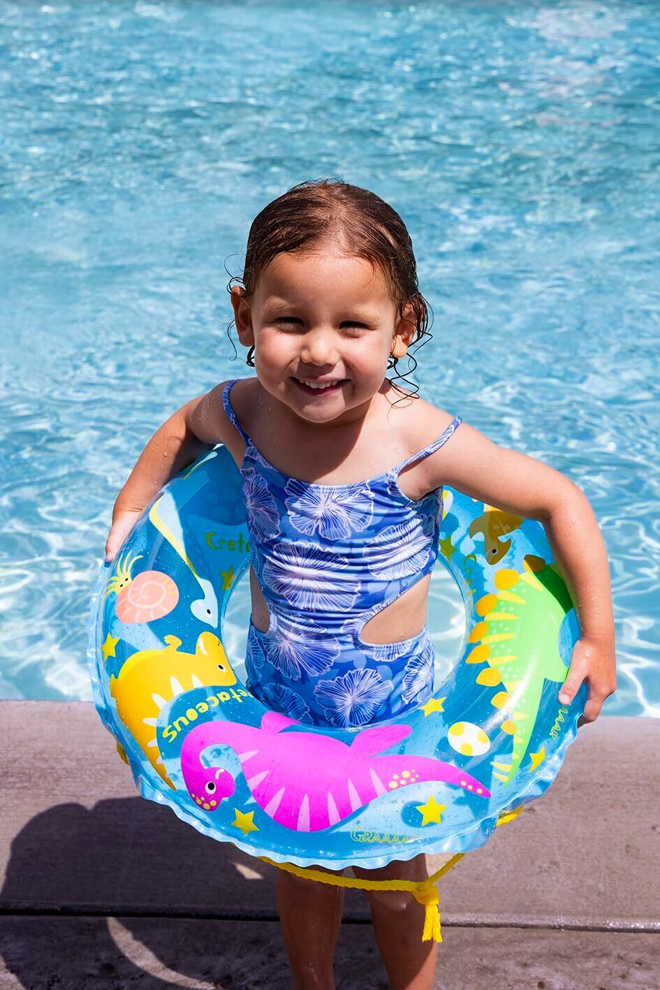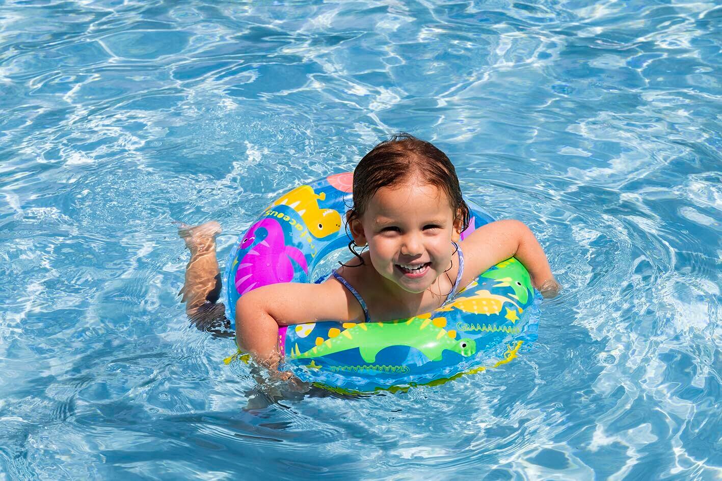 対象年齢3歳~5歳くらいのお子様に最適!。膨らんだ状態のウキワの内周は約70~75cmです。