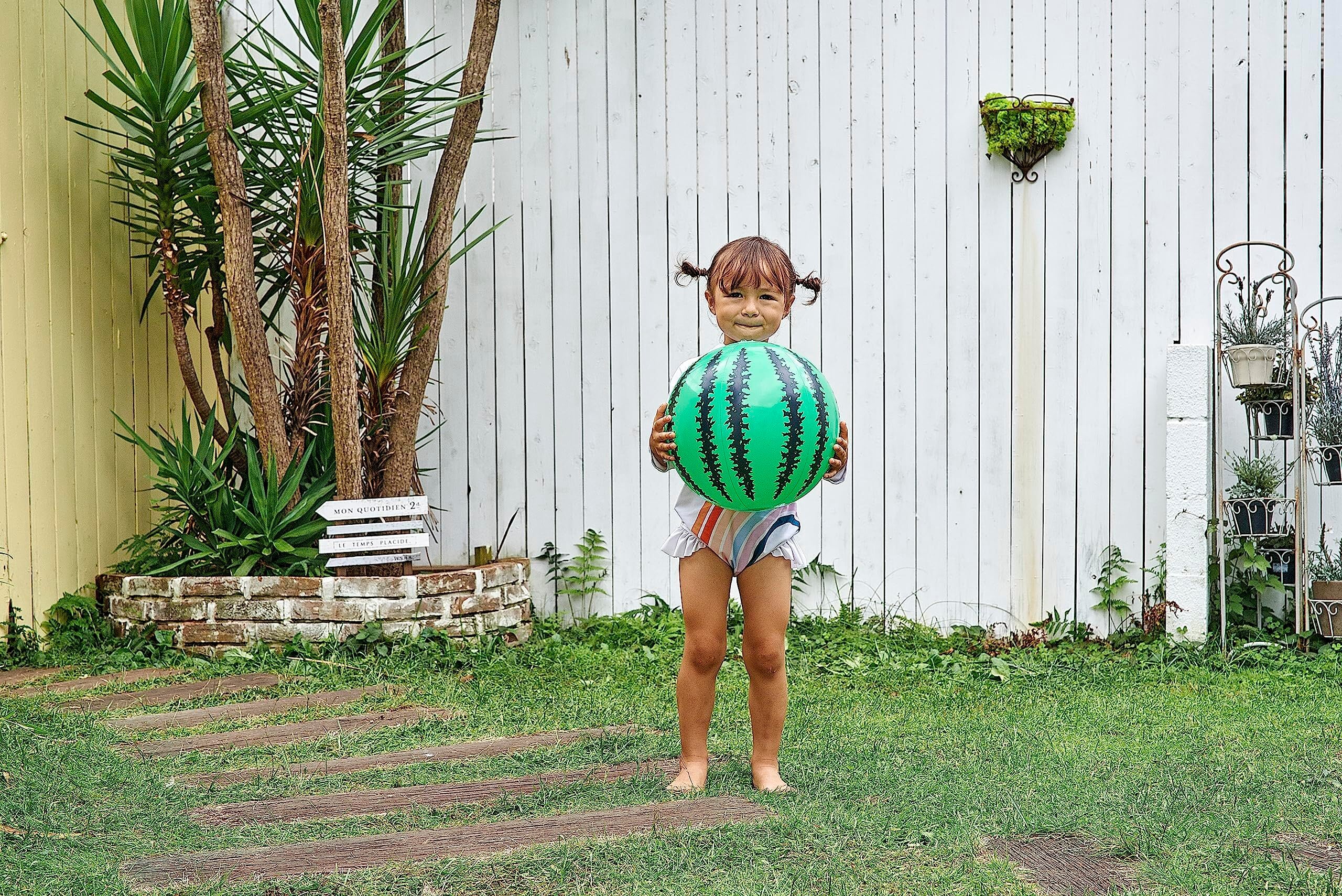 ビーチボールの定番スイカです。ふくらんだ状態での直径は約27cmです