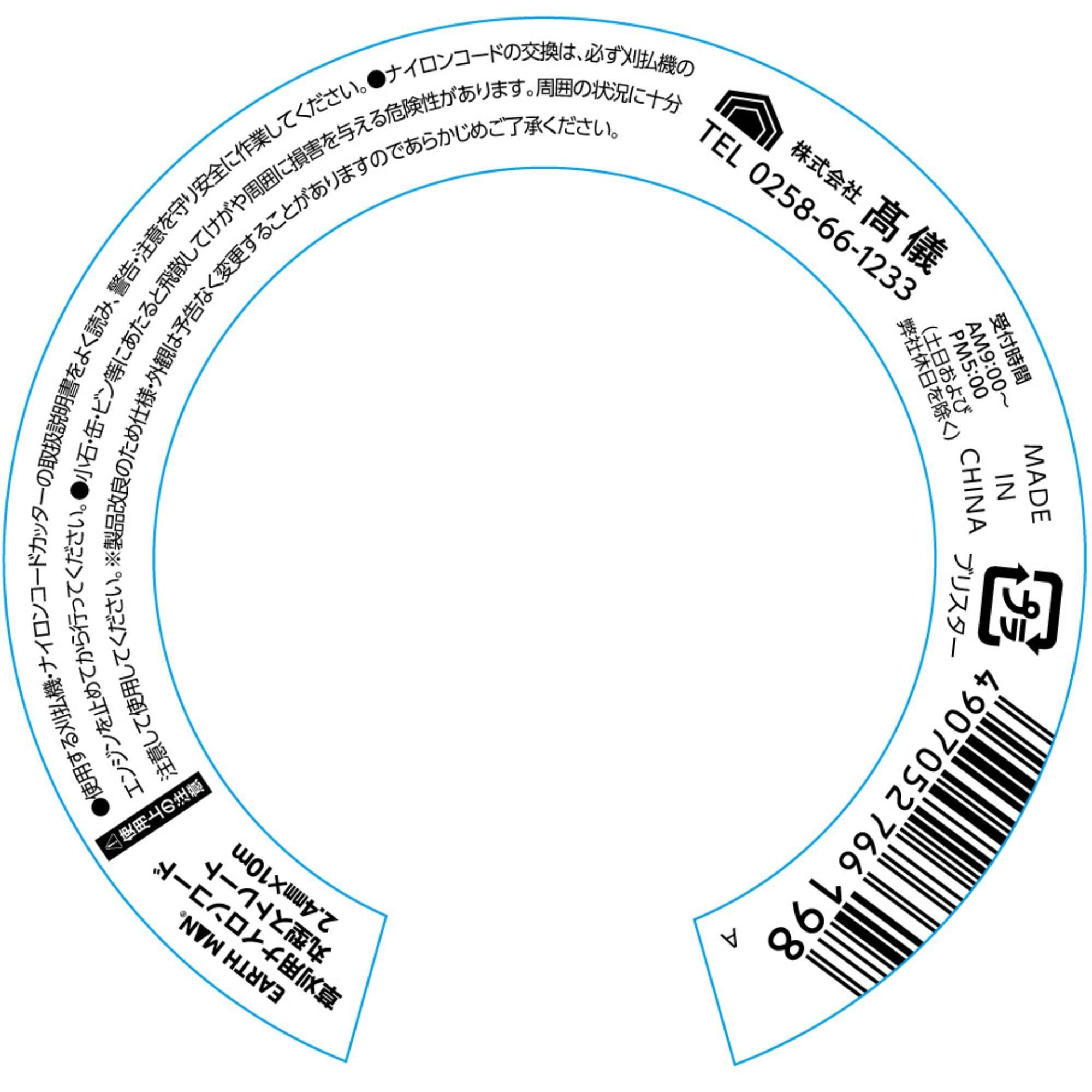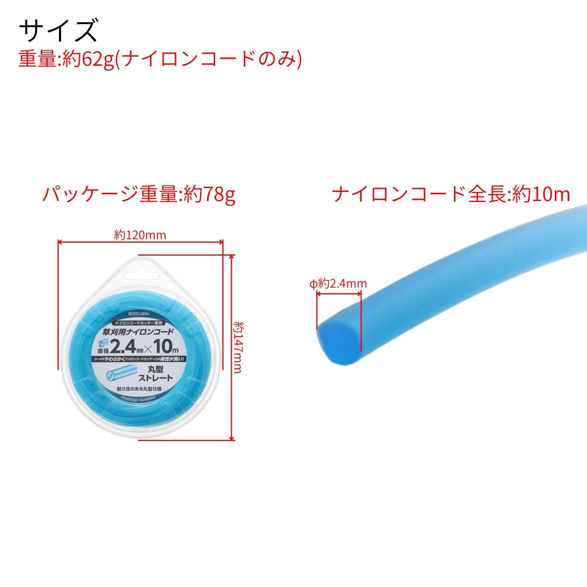 髙儀(Takagi) EARTH MAN 草刈用 ナイロンコード 丸型ストレート 直径2.4mm×10m 青 草刈機 刈払機 ナイロンコードカッター 耐久性 丸型仕様 やわらかい 丸型コード TAKAGI たかぎ 高儀