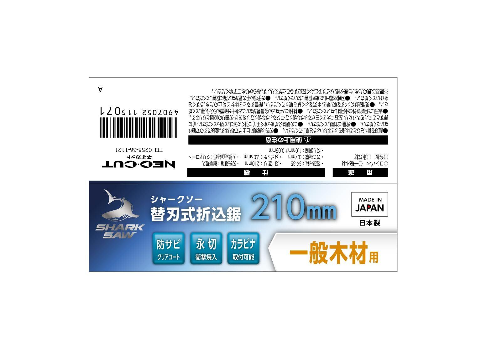 刃渡り:210mm、刃ピッチ:2.05mm