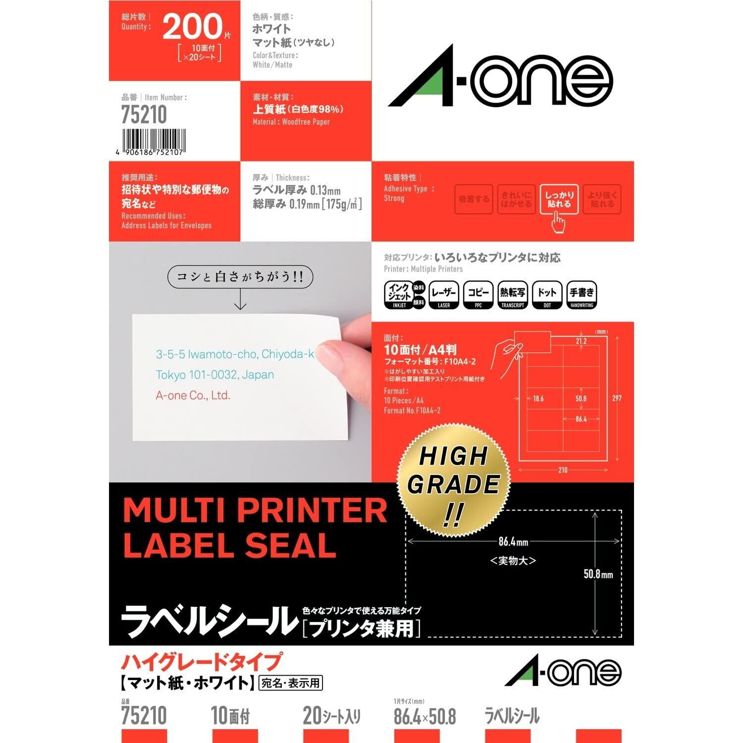 エーワン ラベルシール ハイグレードタイプ 10面 20シート 75210