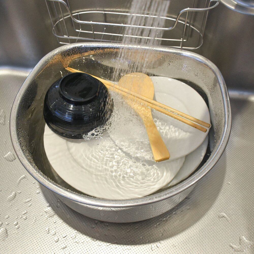 水を流しながら洗っても、中の物が出にくい水切り穴付。