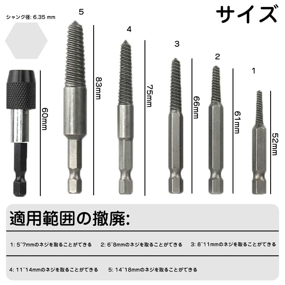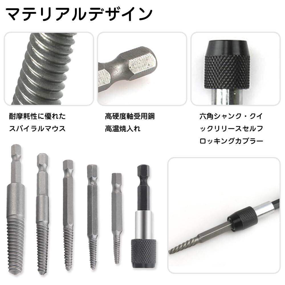 [材質]:ベアリング鋼材、焼入れ処理後、高硬度、良好な靭性、耐摩耗性、損傷したネジを除去するためのツールとして、優れたパフォーマンス