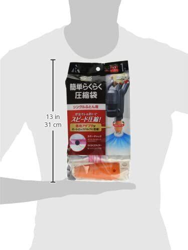 アール(R) 簡単らくらく圧縮袋シングルふとん用1P 圧縮袋 透明無地 90×110(cm) アダプタ付き バルブ式 スティック型 キャニスター型 KR-001