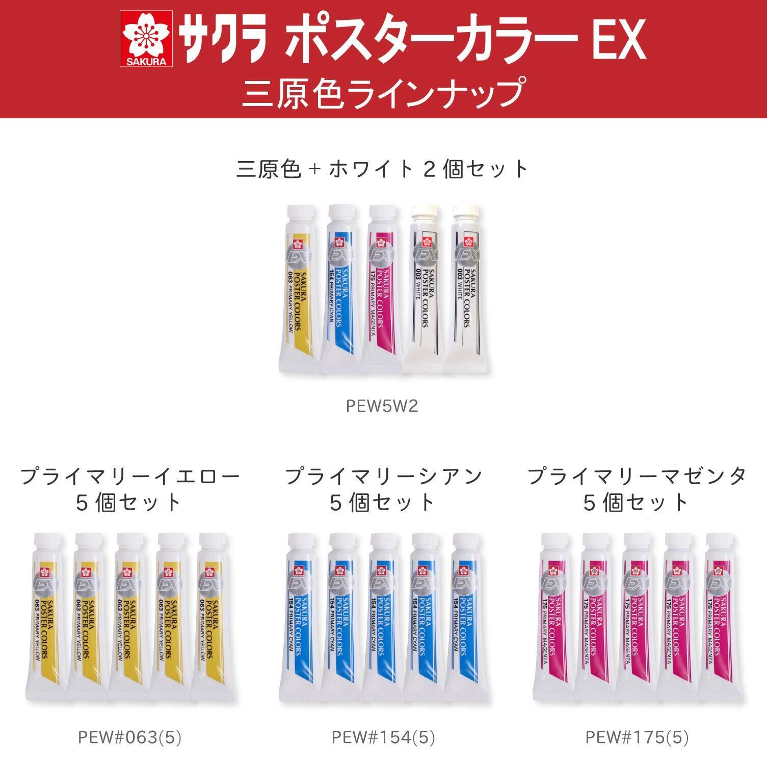サクラクレパス 絵の具 ポスターカラー EX 三原色+ホワイト2本セット PEW5W2