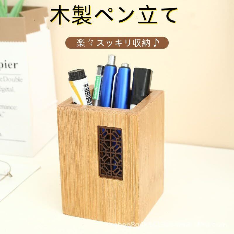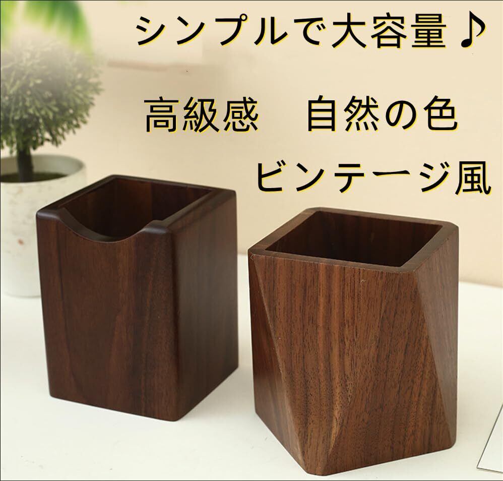 ペン立て ペンスタンド 天然木 木製 お洒落 卓上収納 鉛筆立て ぺんたて ぺん入れ 北欧 (ブラウン)