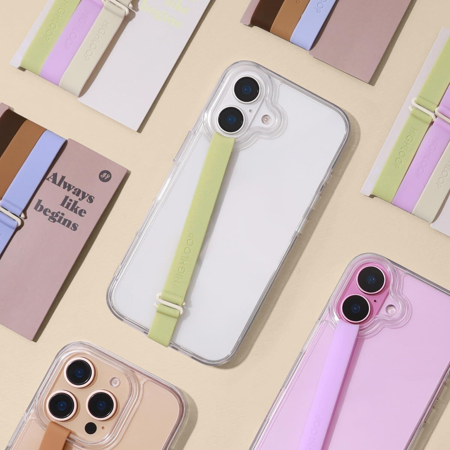 [highloop] 着脱簡単 伸びる携帯ストラップ、ワイヤレス充電対応 スマホバンド型 落下防止 片手操作簡単 スマホケースに引っ掛けるiPhoneフィンガーストラップ 全機種対応スマホグリップ(silicon strap3個セット) (SP04.SHERBERT)