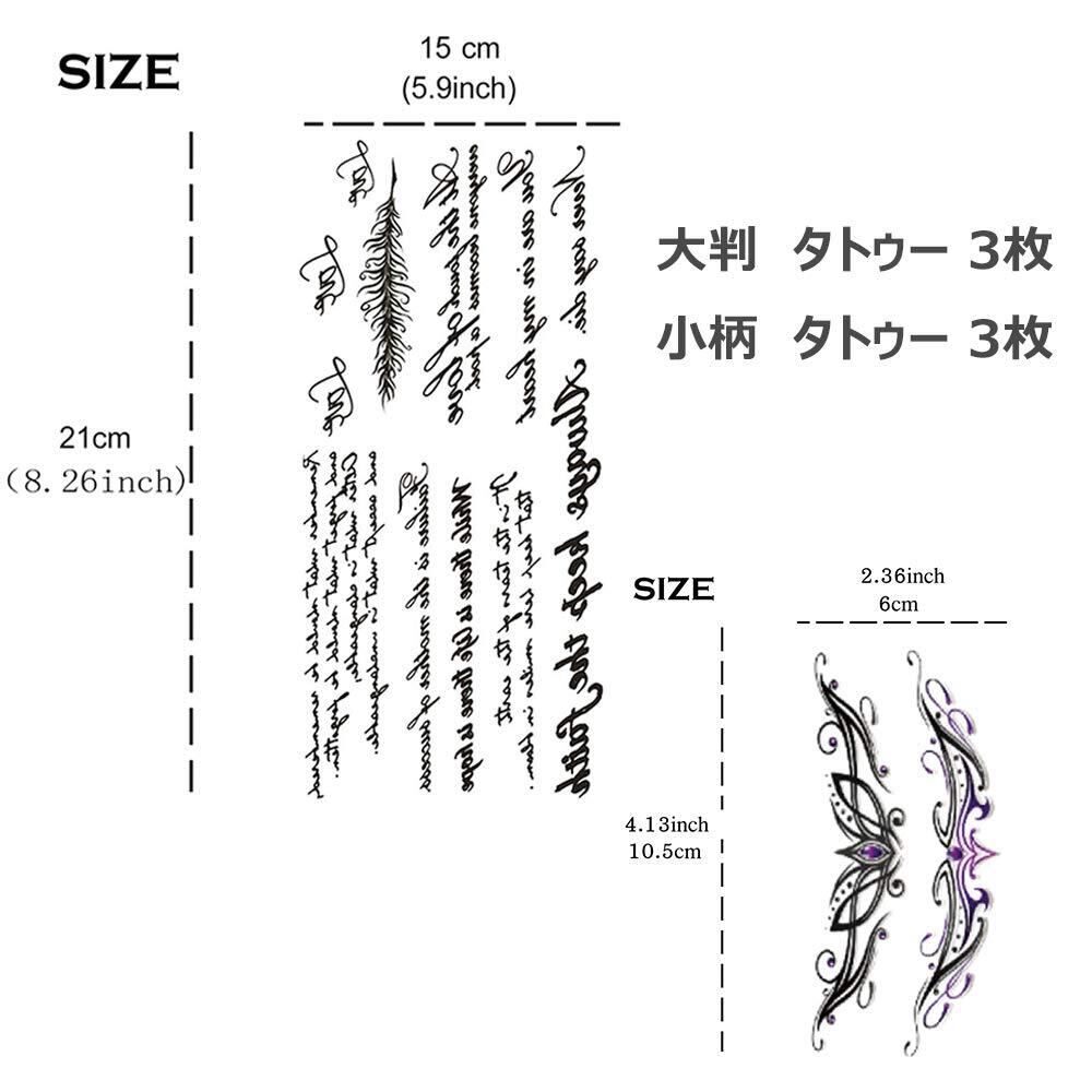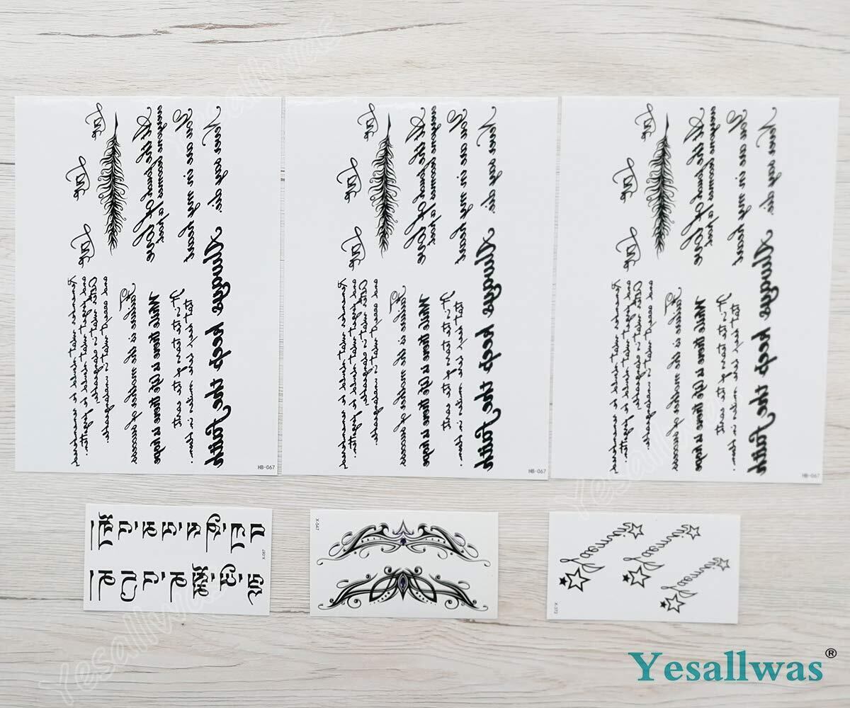 【セット内容】タトゥーシール 文字 6枚セット。大判 文字 タトゥー 3枚 、小柄 文字 タトゥー3枚 。
