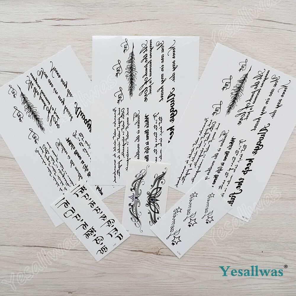 Yesallwas タトゥーシール 英文字 6枚セット(大判3枚 +小柄 3枚) タトゥーステッカー ボディーシール メンズ 刺青シール 防水 腕、足、体、胸、肩、背中に簡単貼る tattoo
